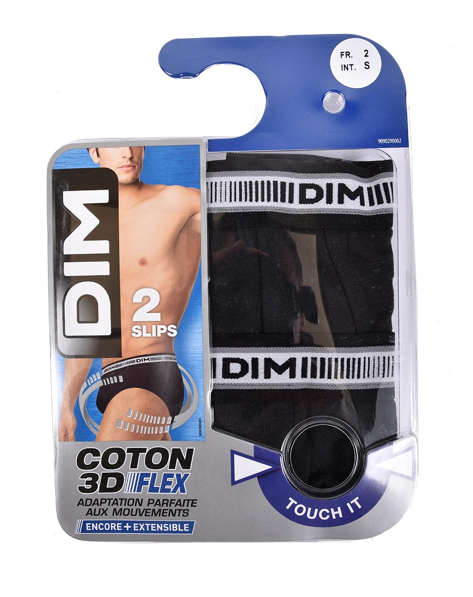 | Libellé | Slips DIM Homme en coton stretch ultra Confort - Pack de 2 Slips Coton 3D Flex Noir |