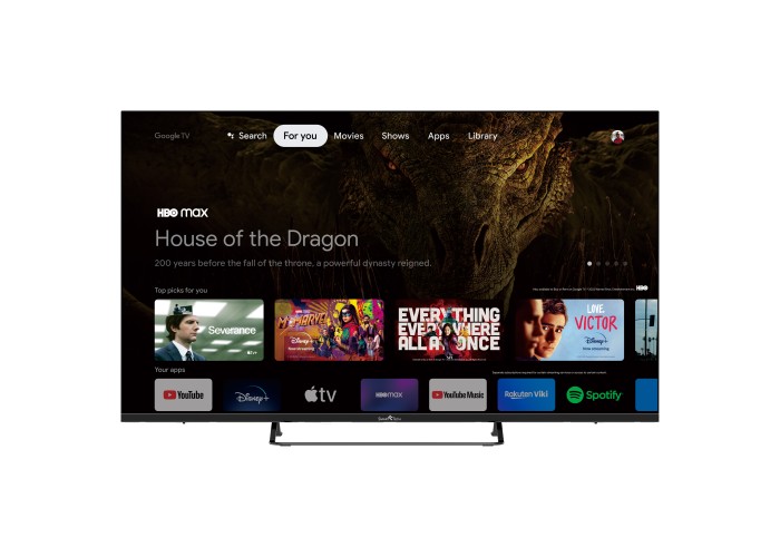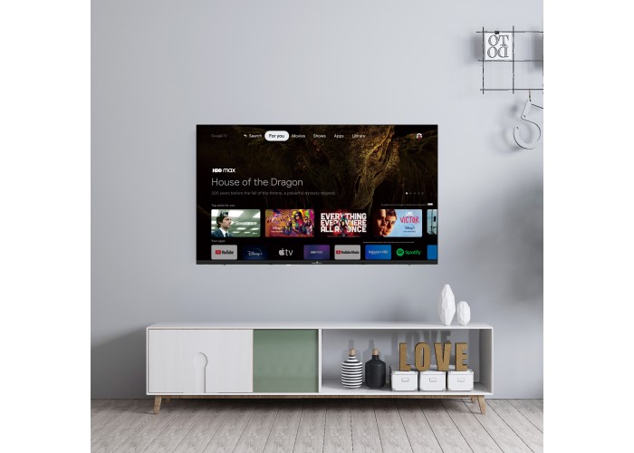 Google tv 43'' (108 cm) Résolution écran: 3840 (h) × 2160 (v) hdr10 , hlg, hevc Dolby Audio 2* 8 watts hdmi, ethernet, usb, wifi, chromecast