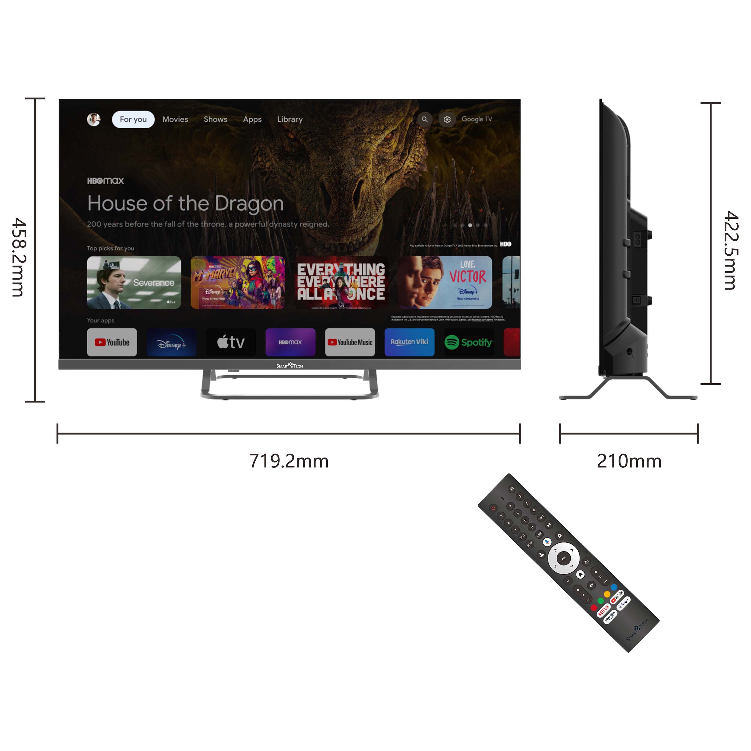 Smart Tech TV LED HD 32" (80 cm) Smart TV Google TV 32HG01VC HDMI, USB, Résolution: 1366 * 768, Prise 12