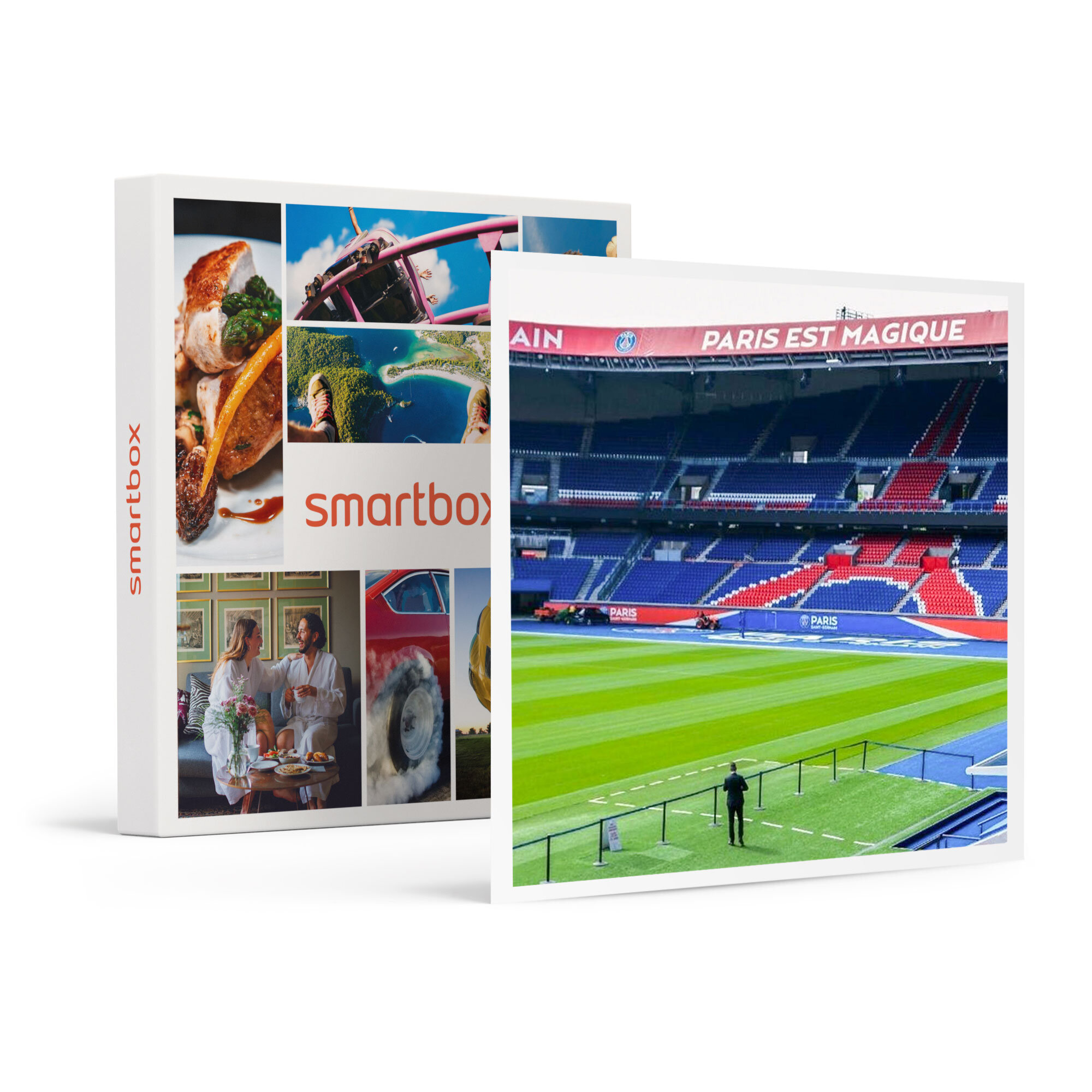 Avis à tous les fans de foot, ce coffret cadeau Smartbox est fait pour vous ! Venez assister aux performances de l’équipe emblématique du Paris-Saint-Germain FC depuis les tribunes avec 1 ou 2 places pour un de leurs matches. Vous profiterez également de 2 jours et 1 nuit pour 2 personnes à l’hôtel 3 étoiles Olympic by Patrick Hayat ou dans un hôtel similaire situé près du stade, avec petit-déjeuner Buffet le matin. Admirez de vos propres yeux les prouesses de vos joueurs préférés dans une foule en liesse et profitez au passage d’un agréable séjour dans la capitale. Comme le dit la devise du PSG : ici, c’est Paris !