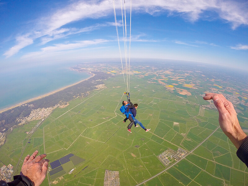 Une box saut en parachute, c'est comme décrocher un ticket pour une montagne russe émotionnelle : de l'excitation pure avant le grand plongeon, un mélange de terreur et d'émerveillement pendant la chute libre, et enfin, le parachute qui s'ouvre pour un véritable moment de plénitude. C'est une danse électrisante avec l'adrénaline, un défi lancé à la gravité et une invitation à vivre intensément. Alors, si l'envie de sentir votre cœur dans votre gorge et d'avoir le sourire le plus large de votre vie vous chatouille, il est temps de sauter dans cette aventure vertigineuse et libératrice, mais en toute sécurité grâce à un instructeur certifié proposant un saut en parachute en tandem !