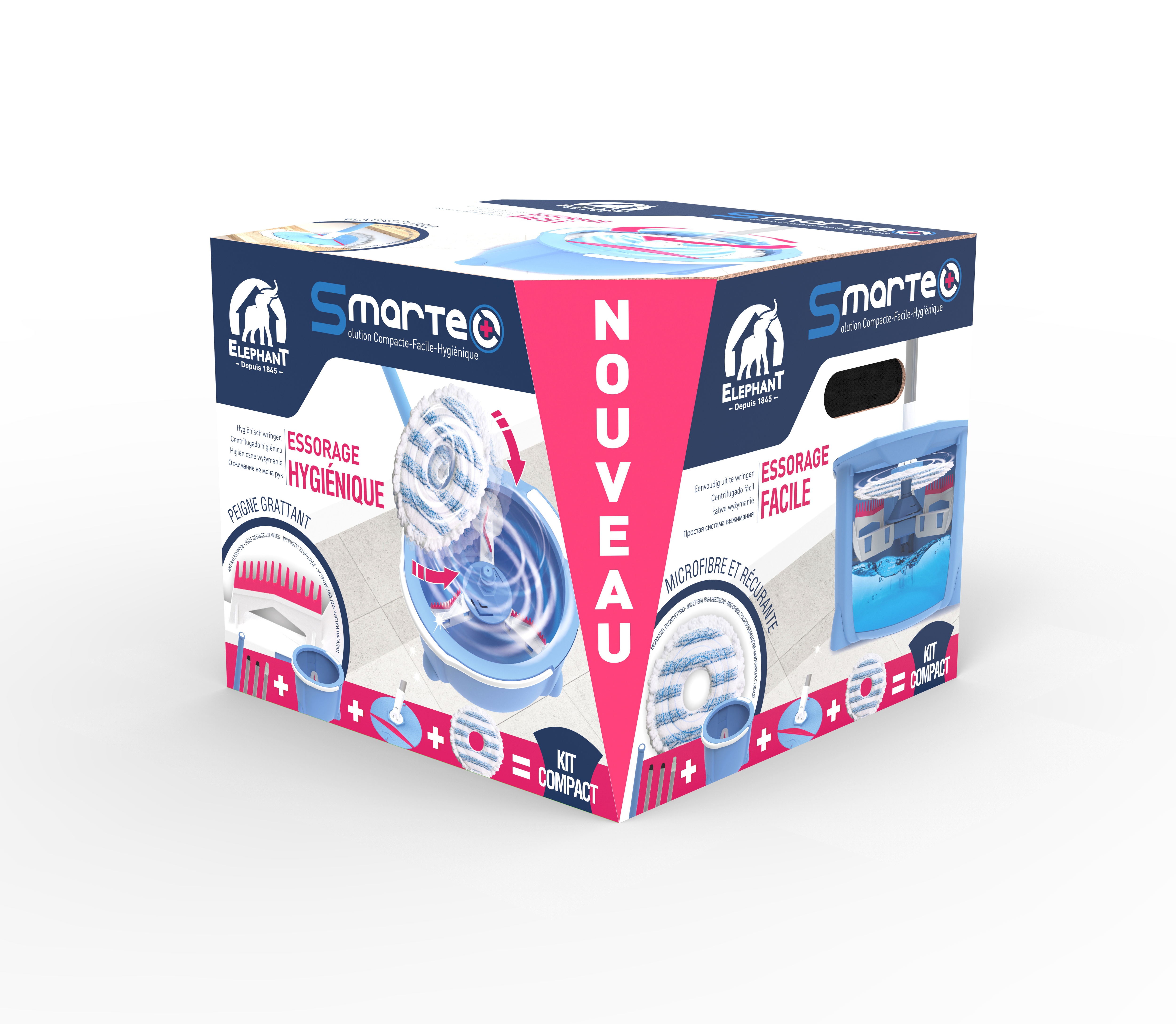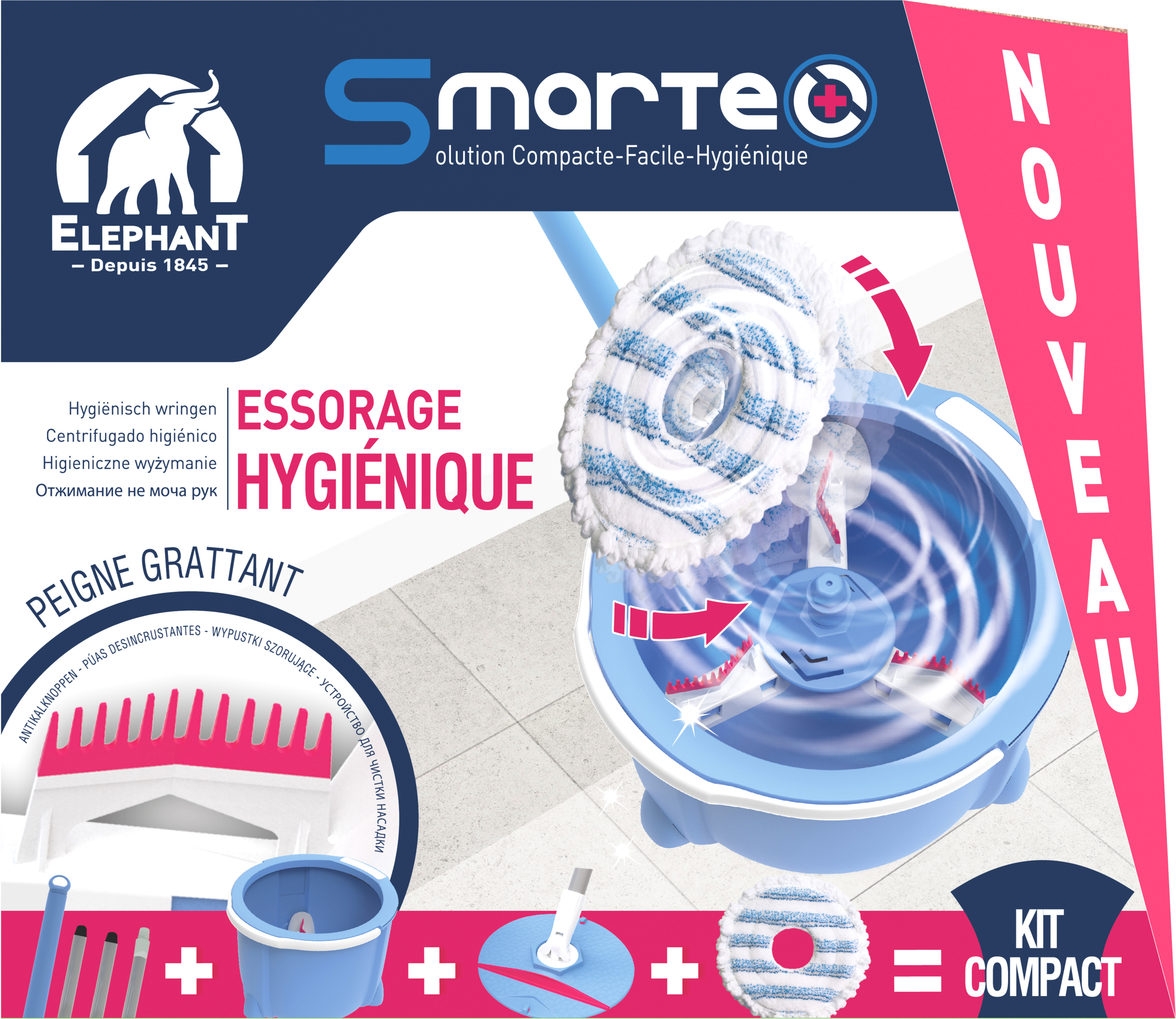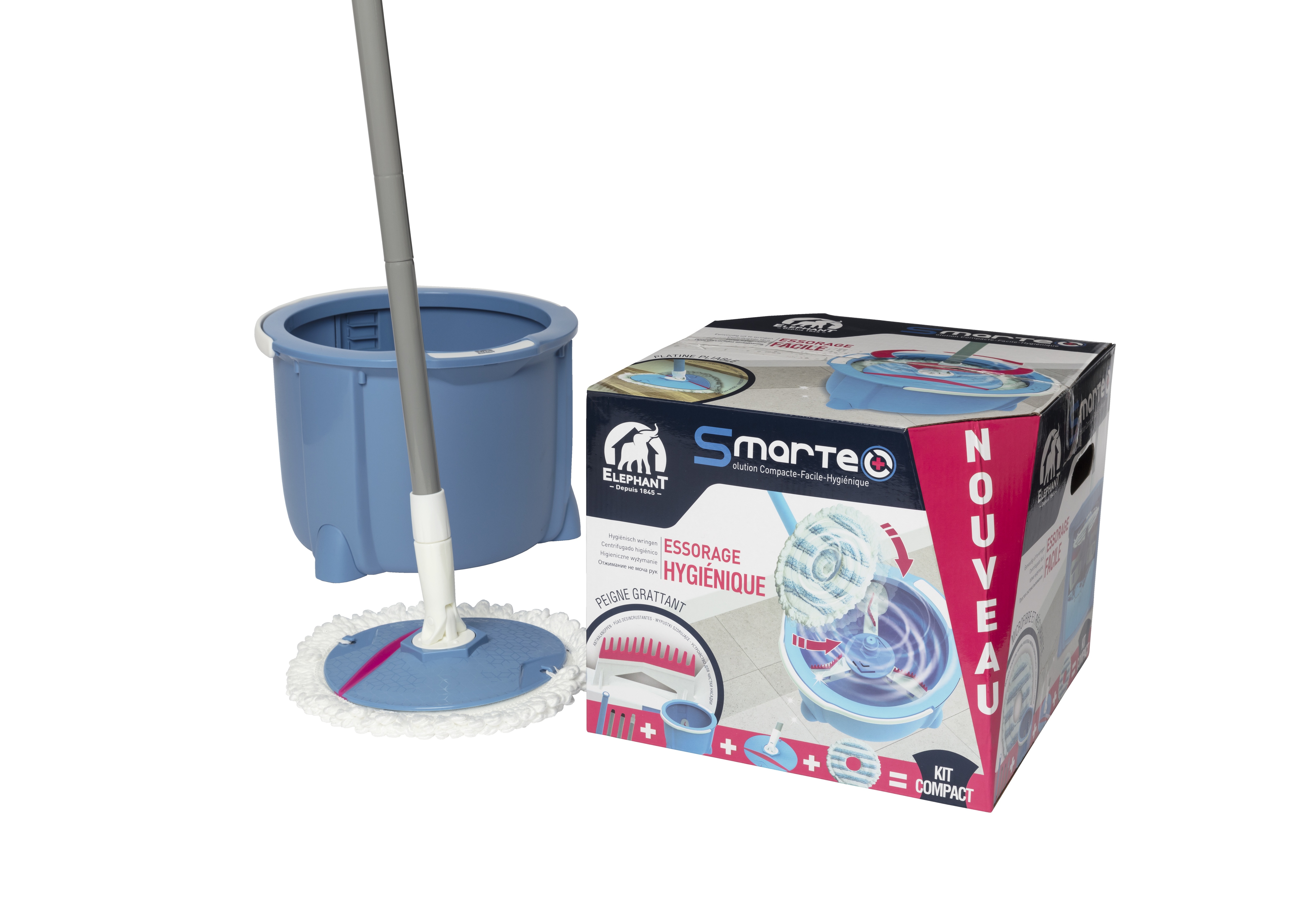 Tellement plus facile de laver ses sols avec Smarteo ! Ce kit complet et compact comprend un balai avec sa housse en microfibre et un seau avec un essoreur intégré. Les peignes grattants nettoient la housse lors de l’essorage. La platine pliable permet de nettoyer les plinthes et contremarches de vos escaliers. Astucieux, il prendra peu de place chez vous. Idéal pour s’équiper totalement et simplement
