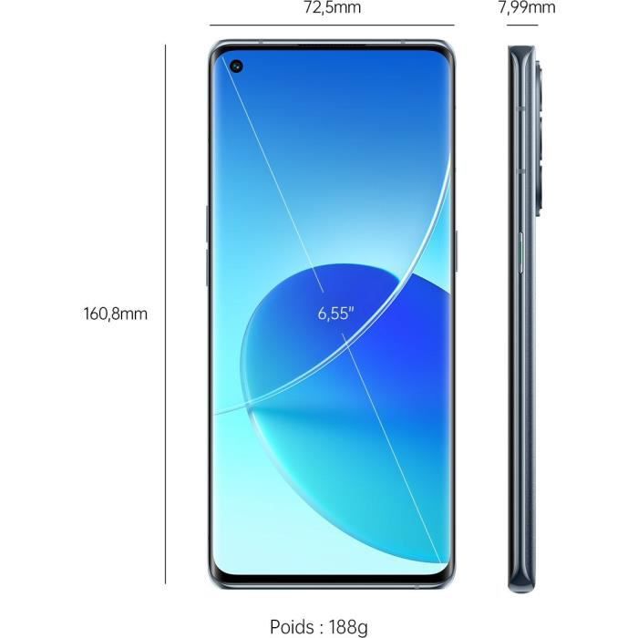 | Accessoires inclus | Oppo Reno6 Pro 5G, Adaptateur secteur Super VOOC 65 W, Ecouteurs, Câble de charge USB type-C, Outil SIM, Film de protection |