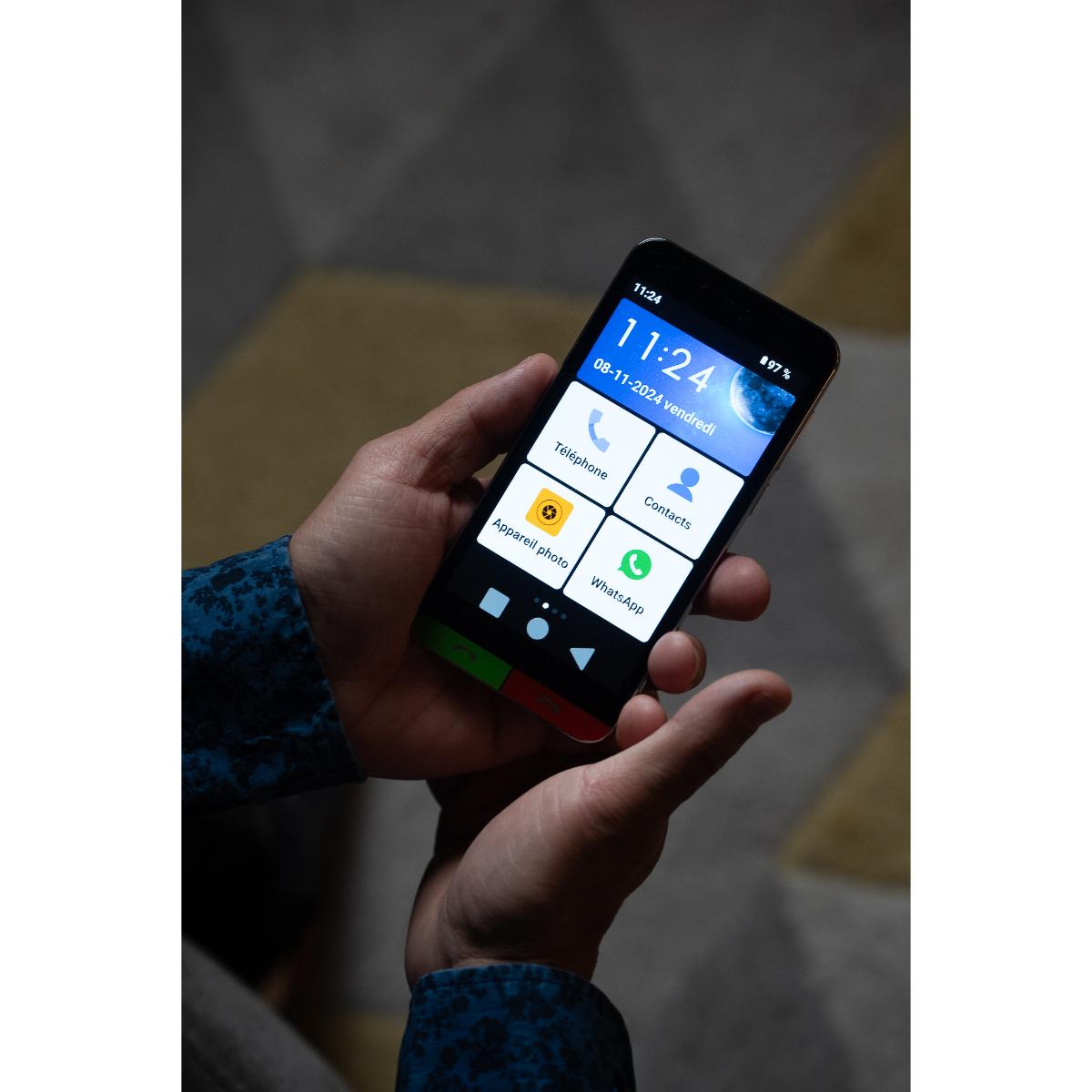 Son interface ultra simplifiée avec icônes larges facilite l'accès aux applications essentielles comme WhatsApp. Le smartphone intègre un bouton d'alerte programmable pour contacter jusqu'à 5 numéros en cas d'urgence et un GPS pour la localisation. Léger et ergonomique, le Binom SX1 combine batterie longue durée, performances fiables et design adapté pour rester connecté en toute sérénité.