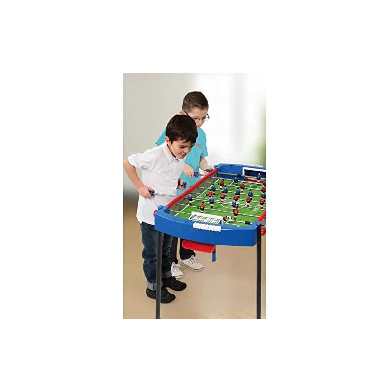 Babyfoot pour les plus jeunes, démontable facilement pour un rangement aisé. Bonne stabilité, pieds antidérapants en métal, repose balle, compteurs de points, terrain fond herbe.