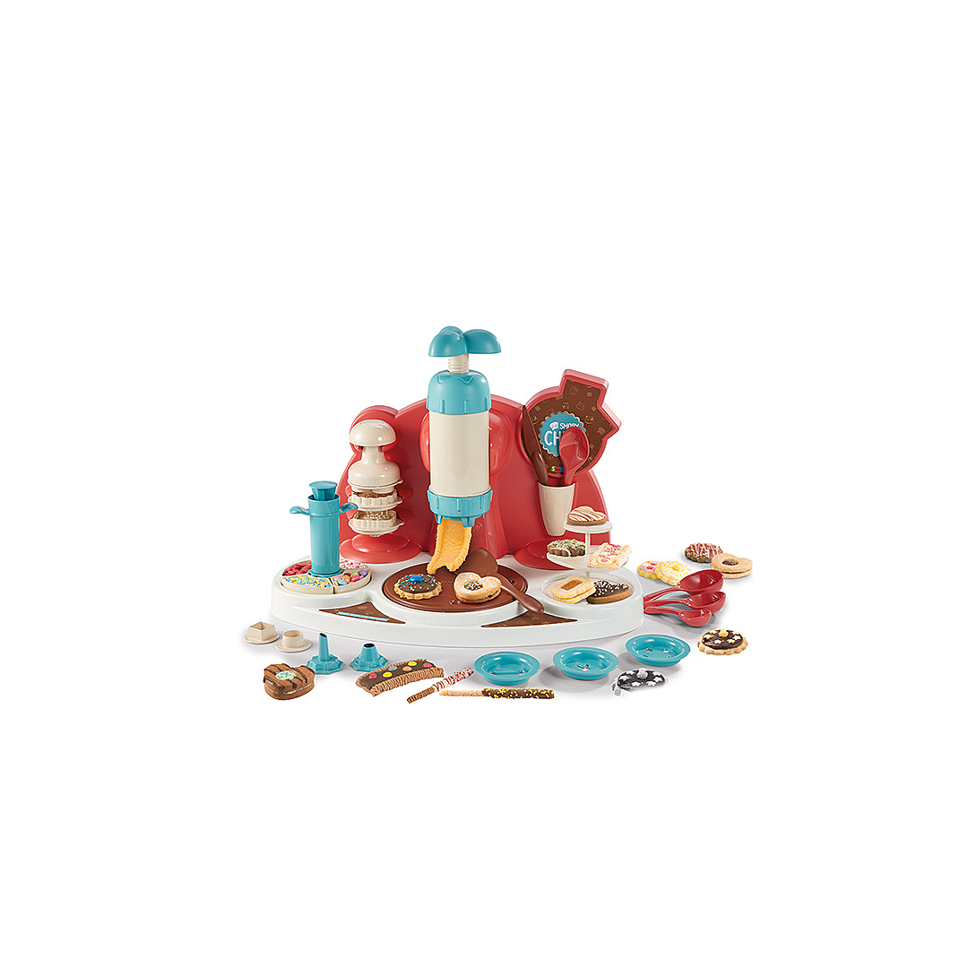 | Plus produit | Playset pour réaliser des biscuits. Nombreux accessoires : presse à biscuits avec 4 embouts, emporte-pièces, ustensiles, seringue avec 3 embouts, présentoir, cuillères, recettes... |