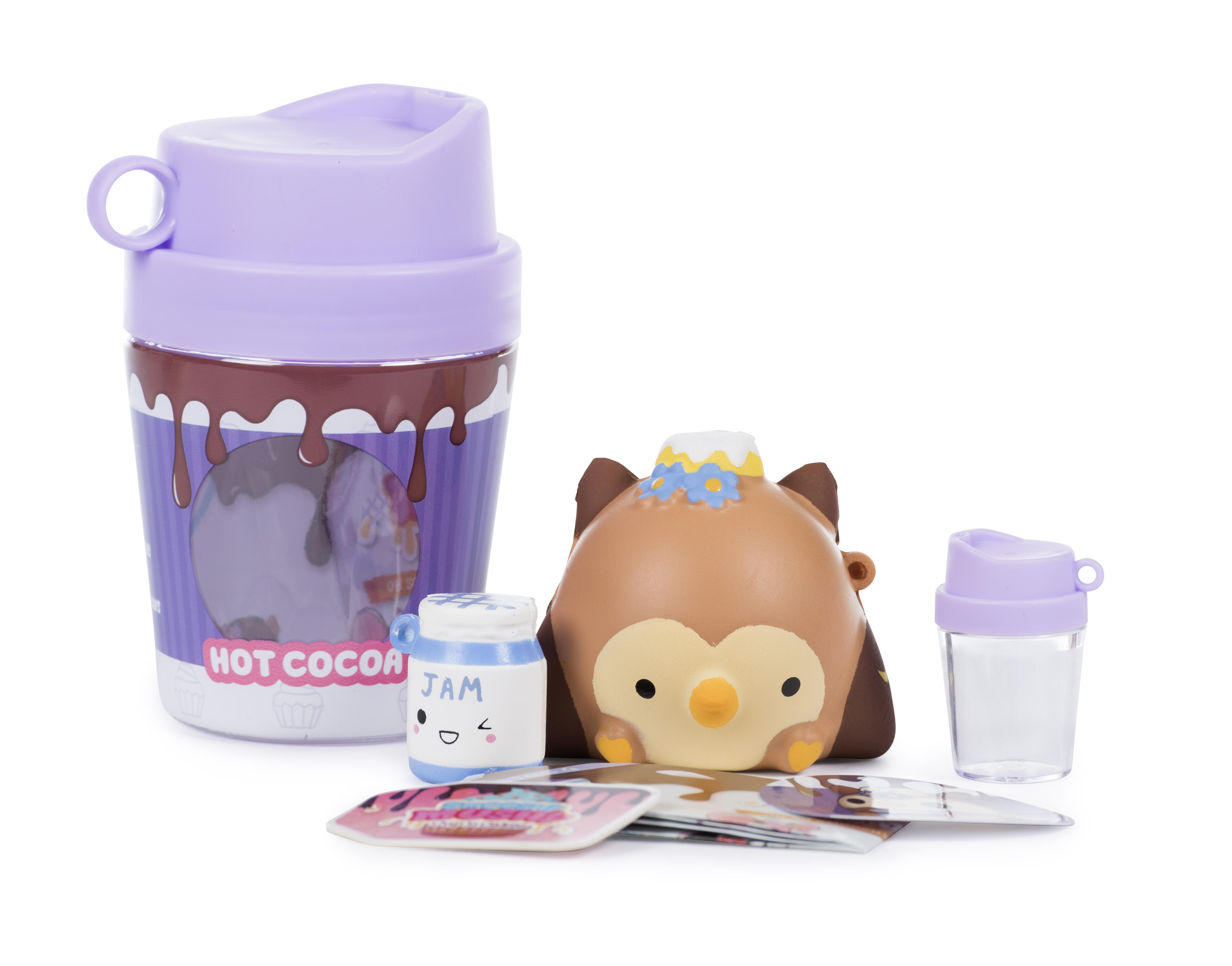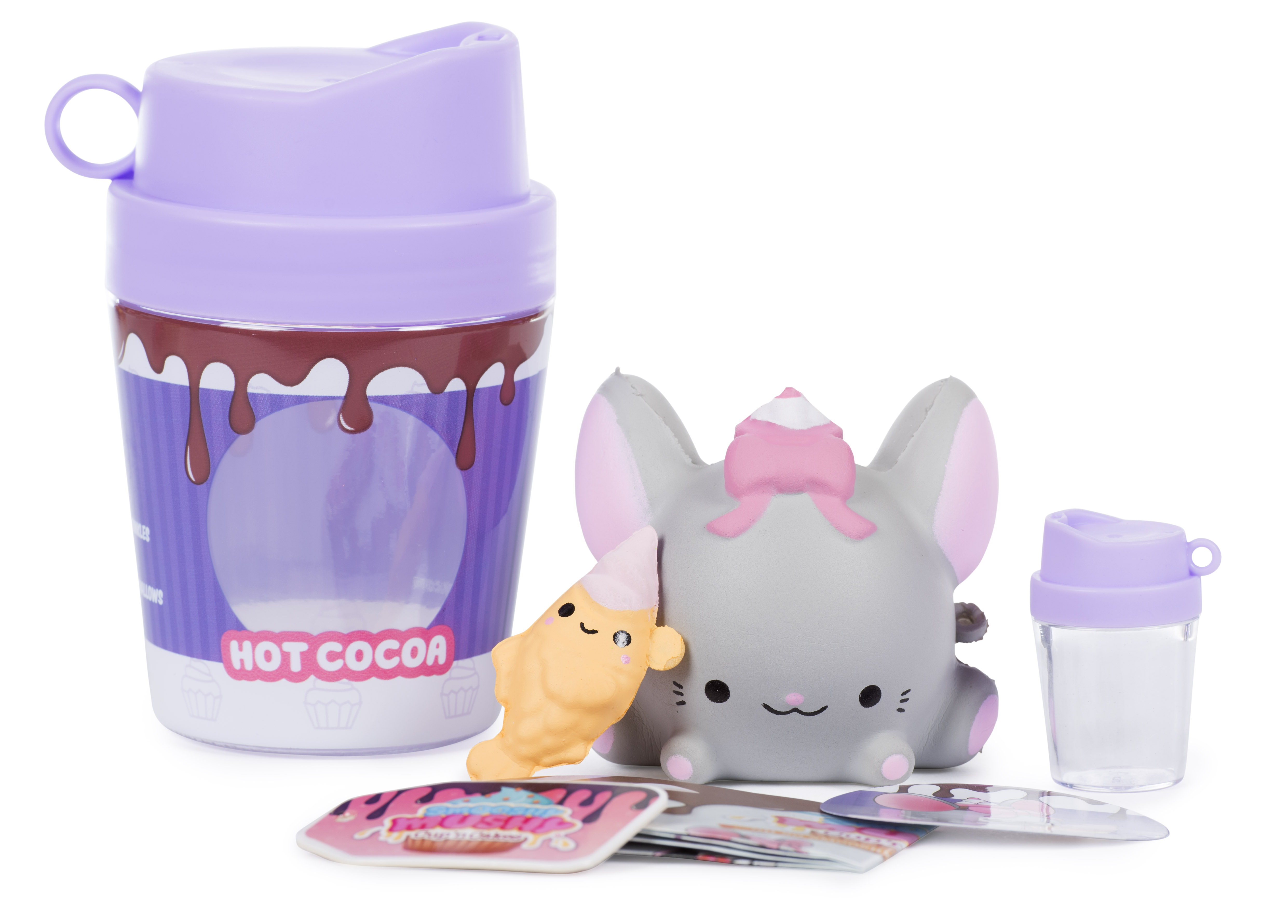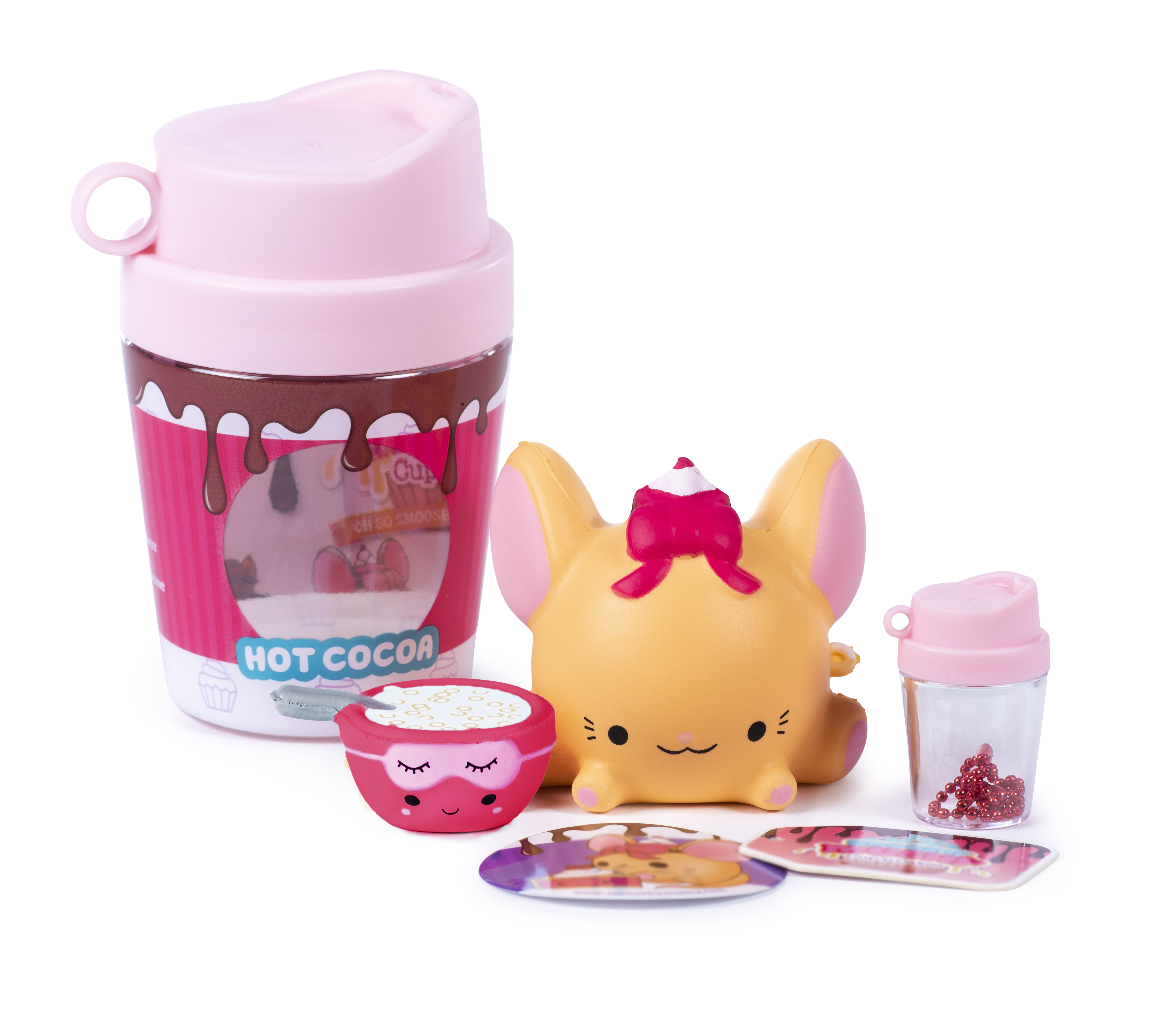 Tous les personnages Smooshy à collectionner ! Glissés dans des cup de café, il y a plein de Smooshy Surprises à découvrir. Chaque cup de café contient : Un Smooshy, une étiquette, un leaflet, un sticker, une mini-bouteille, un Besties et 2 mini-chaînes !