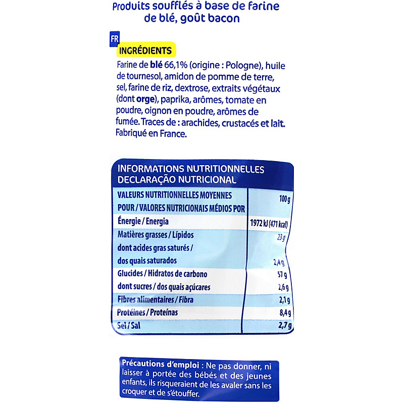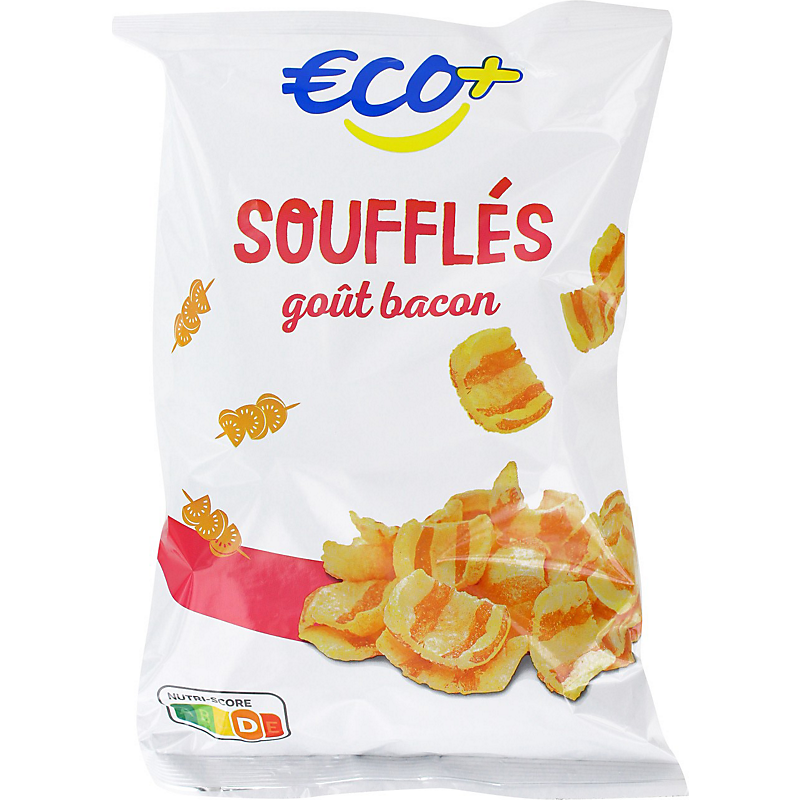 Produits soufflés à base de farine de blé, goût bacon ECO +