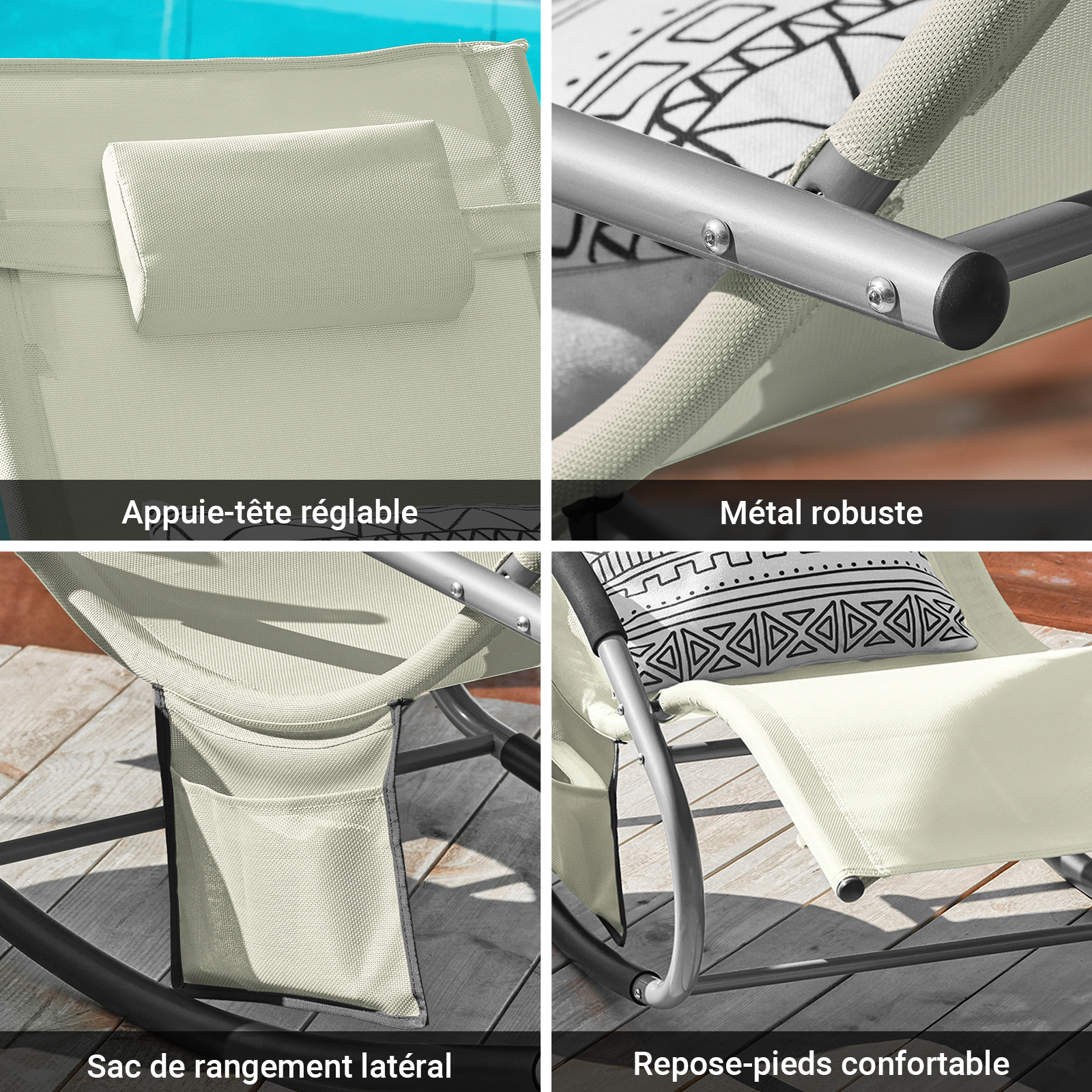 🌟 Votre Oasis de Détente, notre fauteuil à bascule, conçu pour offrir une expérience de confort inégalée, que ce soit à l'intérieur ou l'extérieur !
