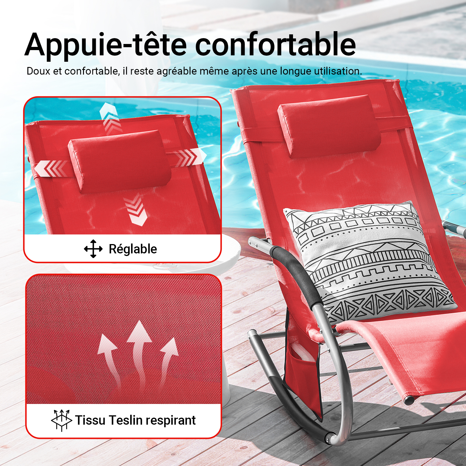 | Libellé | SoBuy Chaise Longue Transat de Jardin Bascule avec Appui-Tête Réglable, Pochette de Rangement et Repose-Pieds, Confort Ergonomique, pour Extérieur, B |