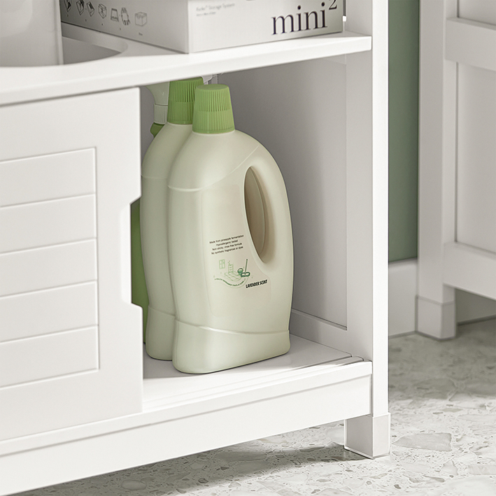 SoBuy FRG128-II-W Meuble Sous-Lavabo Meuble de Salle de Bain Vasque - 1 étage et 2 Portes coulissantes -Blanc