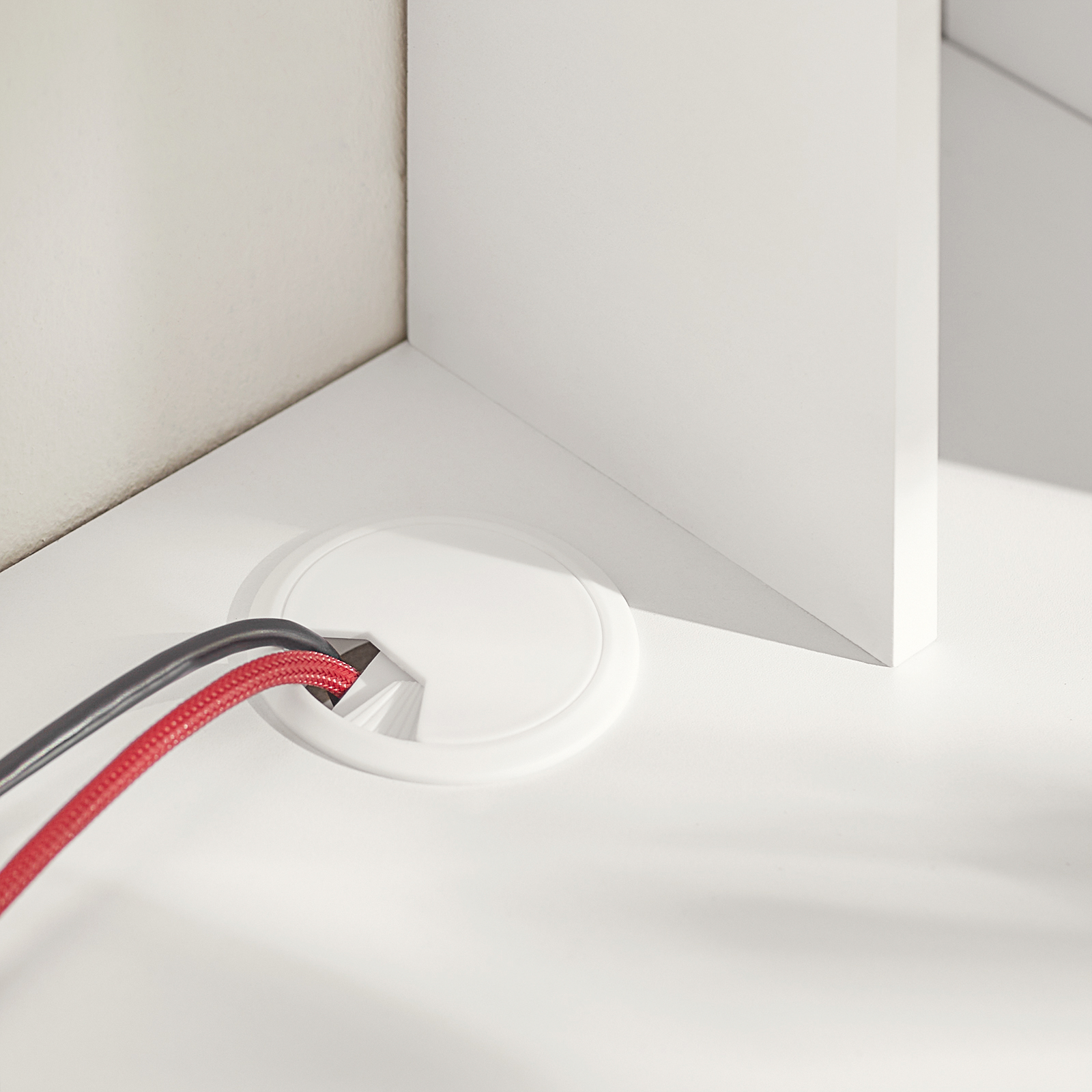 - Une passe cable fil plastique se trouve sur plateau pour traverser les fils électriques.