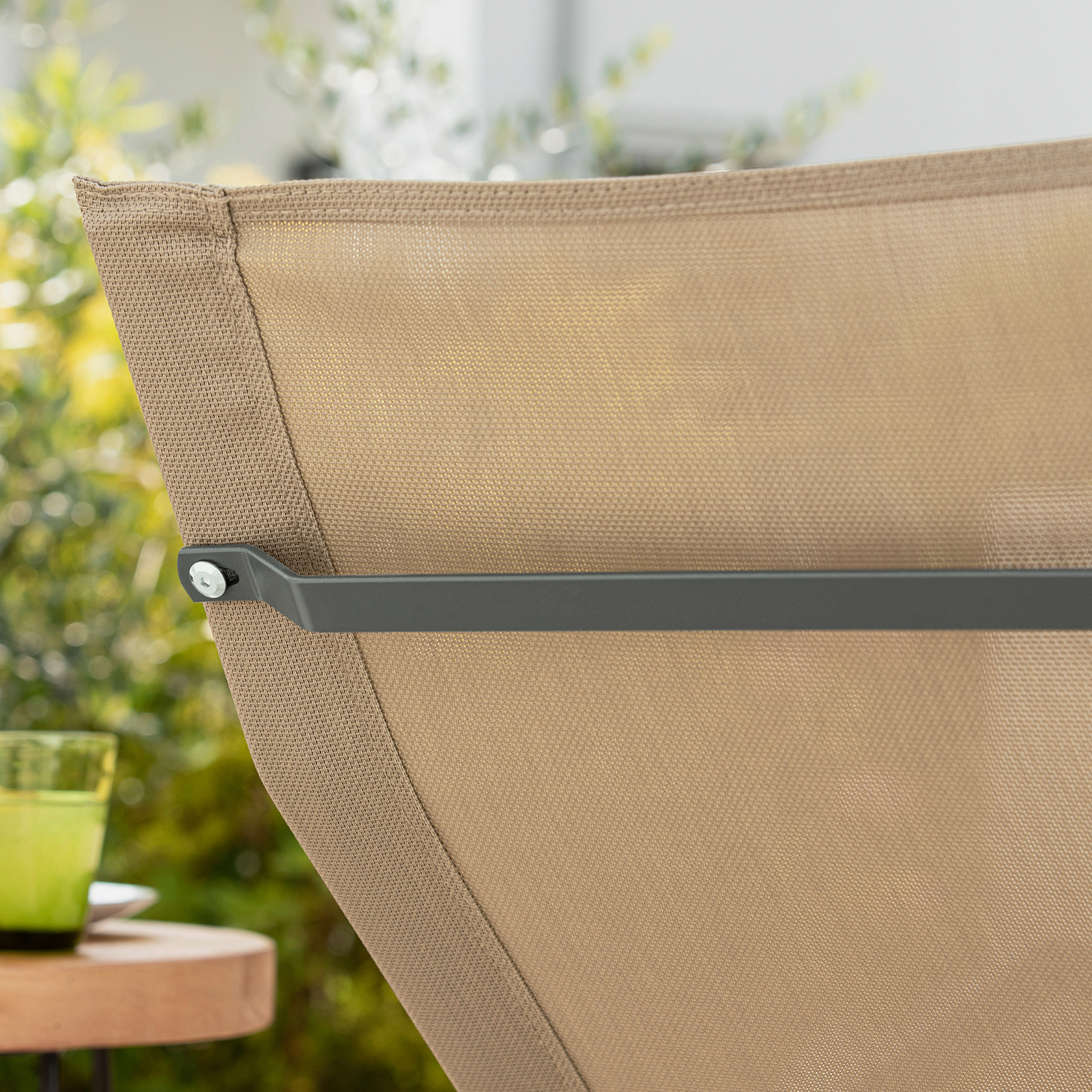 - Matériel : métal enduit noir antirouille et textilène.