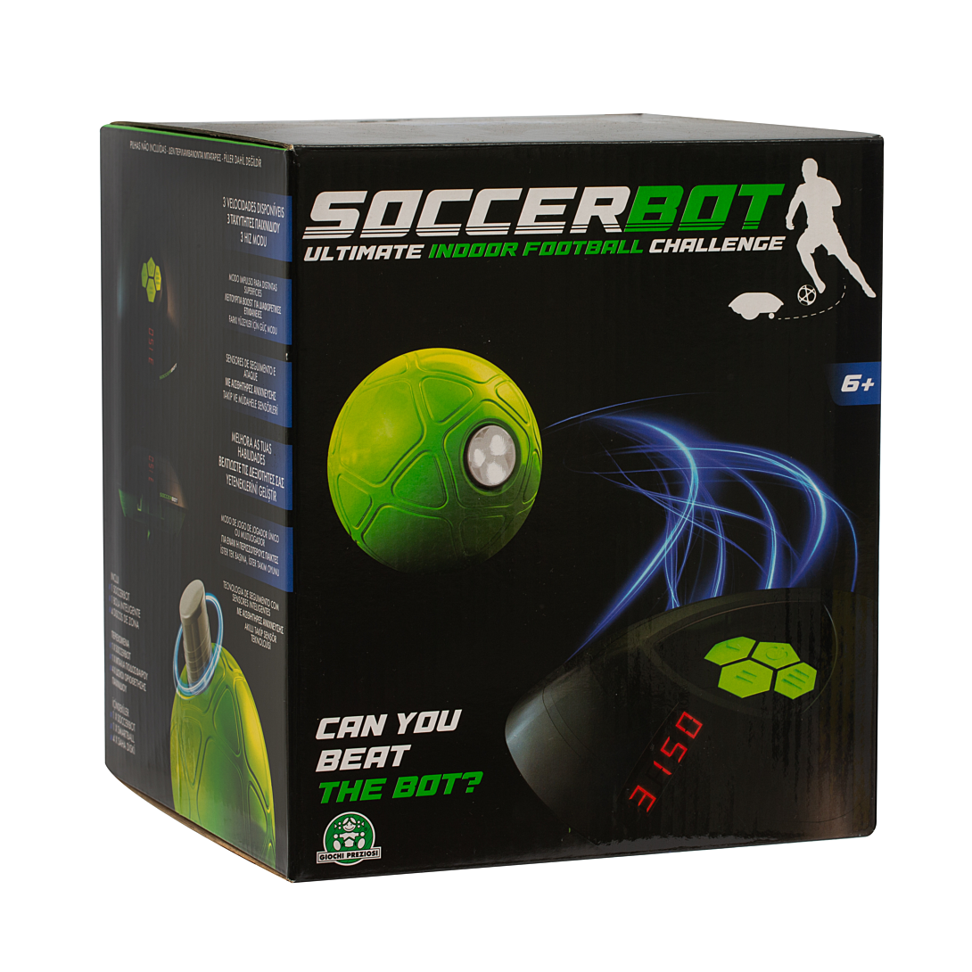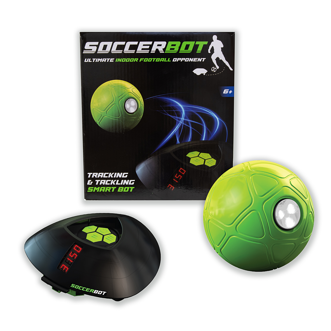 Soccer Bot est l'ultime système d’entraîneur de football en intérieur. Grâce à la dernière technologie de capteurs, Soccer Bot peut suivre le ballon et essayer de le toucher pour te battre ! Nombre de joueur : de 1 à 4 joueurs Le robot peut s’adapter à différents types de sol 3 niveaux de difficulté.