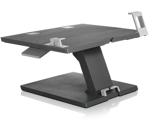Élève votre ordinateur portable à la hauteur des yeux. Baisser la tête pour regarder votre ordinateur portable entraîne des douleurs cervicales. Le socle réglable pour ordinateur portable de Lenovo permet d'élever votre appareil à bonne hauteur pour une position ergonomique. Vous pouvez également utiliser votre ordinateur portable comme écran principal ou ajouter un moniteur pour bénéficier simultanément de deux écrans. Support réglable pour ordinateur portable avec amplitude de mouvement continue pour choisir une hauteur d'affichage et un confort ergonomique parfait ; Permet de soulever, d'incliner et de pivoter l'ordinateur portable d'un côté à l'autre, pour un ajustement optimal. Branchez-vous aux stations d'accueil mécaniques Lenovo grâce à l'accès complet à tous les ports ; Offre une excellente gestion des câbles ; Réglage de hauteur avec verrouillage ; Panoramique latéral ; Inclinaison d'avant en arrière avec verrou.
