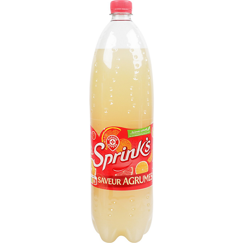 Boisson gazéifiée saveur agrumes avec sucre et édulcorants. SPRINK'S