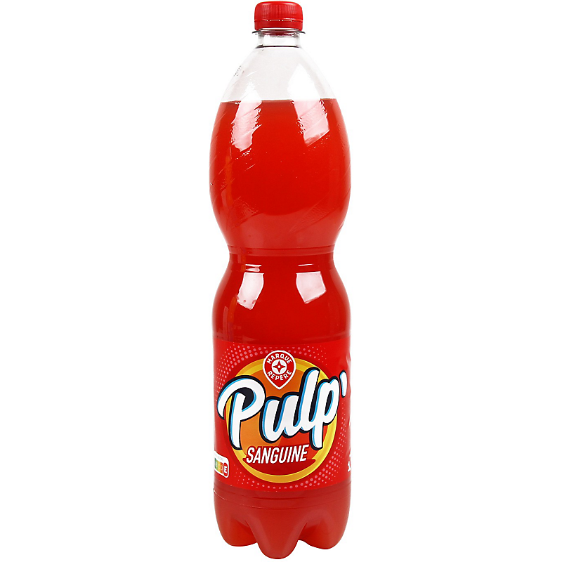 Boisson gazéifiée au jus d'orange sanguine à base de concentré et à la pulpe d'orange, aromatisée PULP ORANGE