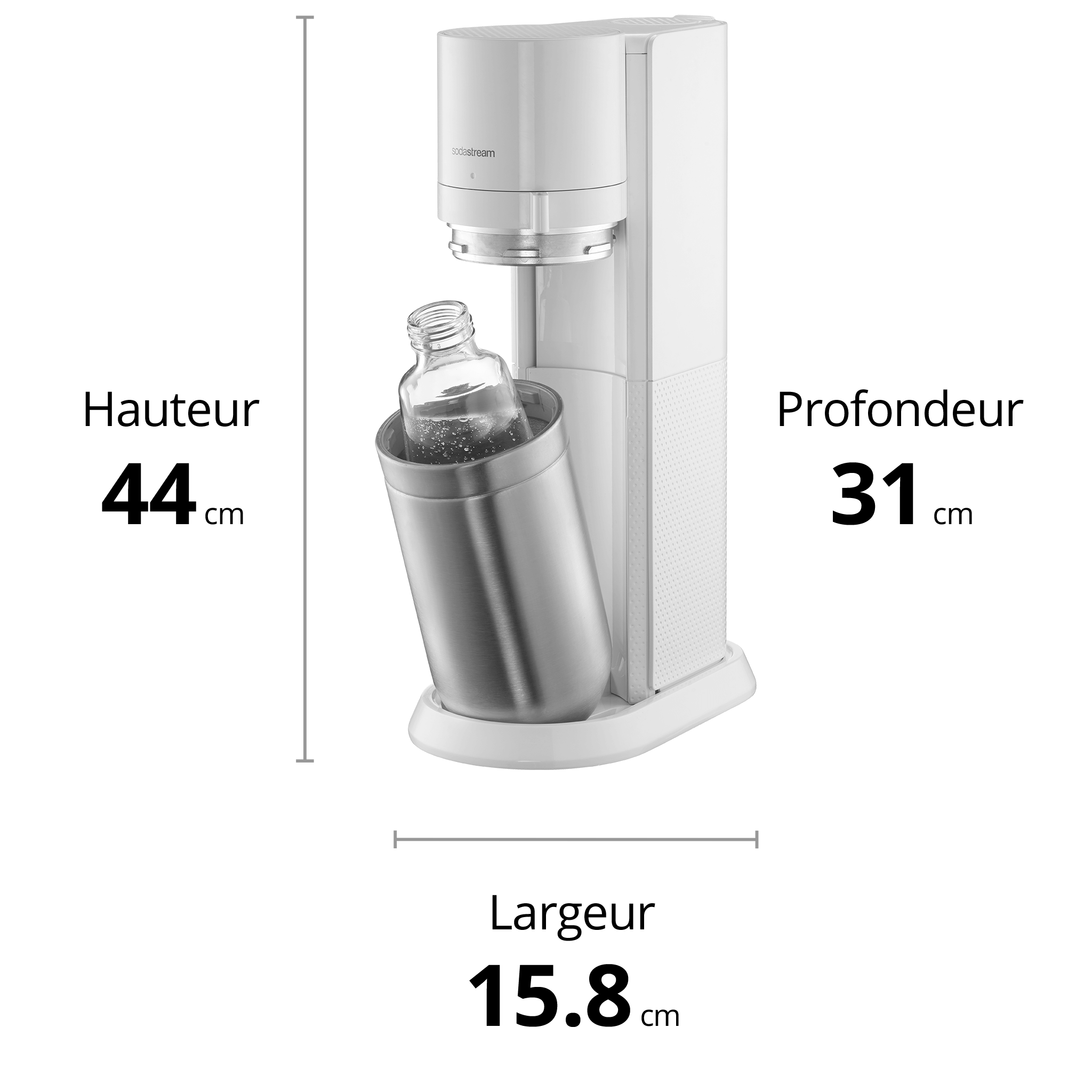 Libellé SodaStream DUO Machine à Eau Pétillante | Pack 2 Carafes 1L + 2 Bout. 1L +1 Recharge 60L Blanche