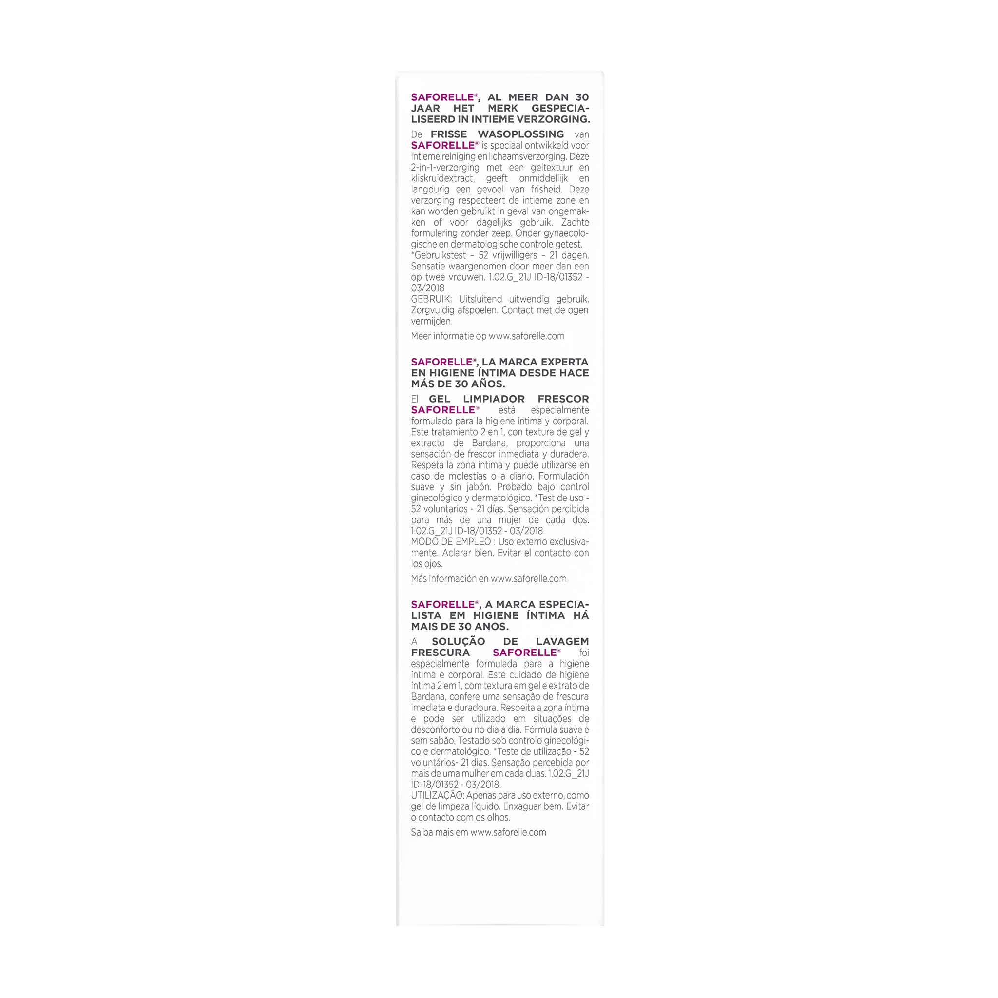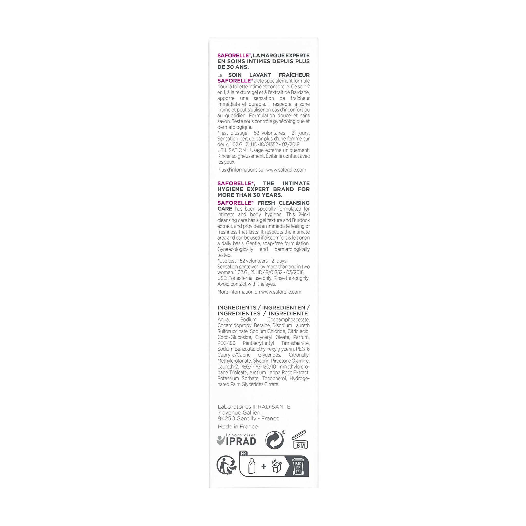 Saforelle Soin Lavant Fraîcheur 100 ml est un gel lavant spécialement conçu pour apporter une sensation de fraîcheur et un confort durable aux peaux les plus sensibles. Ce soin lavant contient une formulation douce à l'extrait naturel de Bardane et sans savon qui en fait le soin idéal au quotidien. Sa texture gel procure une sensation immédiate et durable de fraîcheur. Testé sous contrôle gynécologique et dermatologique. Efficacité perçue : - 98% : le produit apporte une sensation de fraîcheur immédiatement après application/rinçage. - 92% : le produit neutralise les odeurs indésirables.