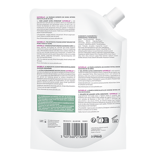 Le Soin Lavant Ultra Hydratant Saforelle a été spécialement formulé pour les femmes présentant des signes de sécheresse intime pouvant être dus à la prise de certains médicaments, à une variation hormonale comme celle liée à la ménopause. Grâce à sa formule qui allie agents surgras, extraits naturels d’Aloe Vera et de bardane, le Soin Lavant Ultra Hydratant participe à une meilleure hydratation, source de confort intime et permet une toilette quotidienne en douceur. Sa formule est sans savon, , l. Le Soin Lavant Ultra Hydratant a été testé sous contrôle médical par des gynécologues et des dermatologues.