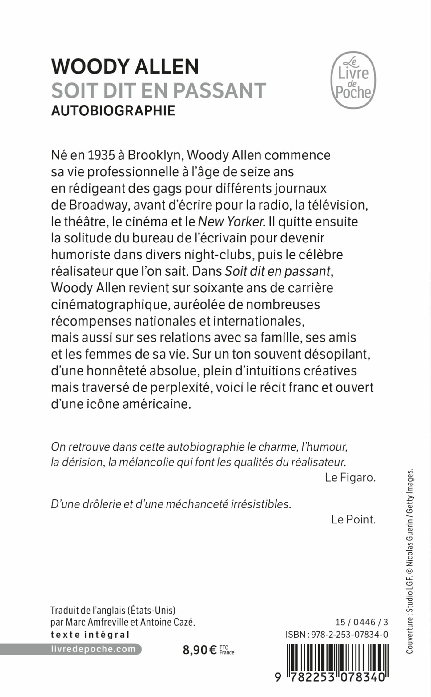 Né en 1935 à Brooklyn, Woody Allen commence sa vie professionnelle à l'âge de seize ans en rédigeant des gags pour différents journaux de Broadway, avant d'écrire pour la radio, la télévision, le théâtre, le cinéma et le New Yorker. Il quitte ensuite la solitude du bureau de l'écrivain pour devenir humoriste dans divers night-clubs, puis le célèbre réalisateur que l'on sait. Dans Soit dit en passant, Woody Allen revient sur soixante ans de carrière cinématographique, auréolée de nombreuses récompenses nationales et internationales, mais aussi sur ses relations avec sa famille, ses amis et les femmes de sa vie. Sur un ton souvent désopilant, d'une honnêteté absolue, plein d'intuitions créatives mais traversé de perplexité, voici le récit franc et ouvert d'une icône américaine.