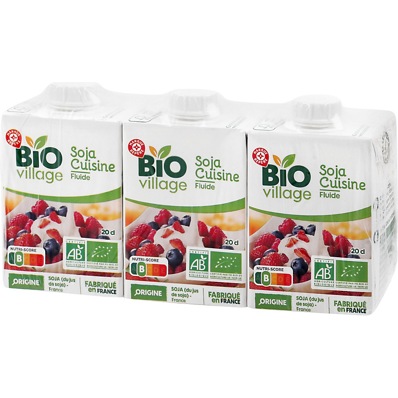 PREPARATION CULINAIRE A BASE DE SOJA, STERILISEE UHT - PRODUIT ISSU DE L'AGRICULTURE BIOLOGIQUE BIO VILLAGE
