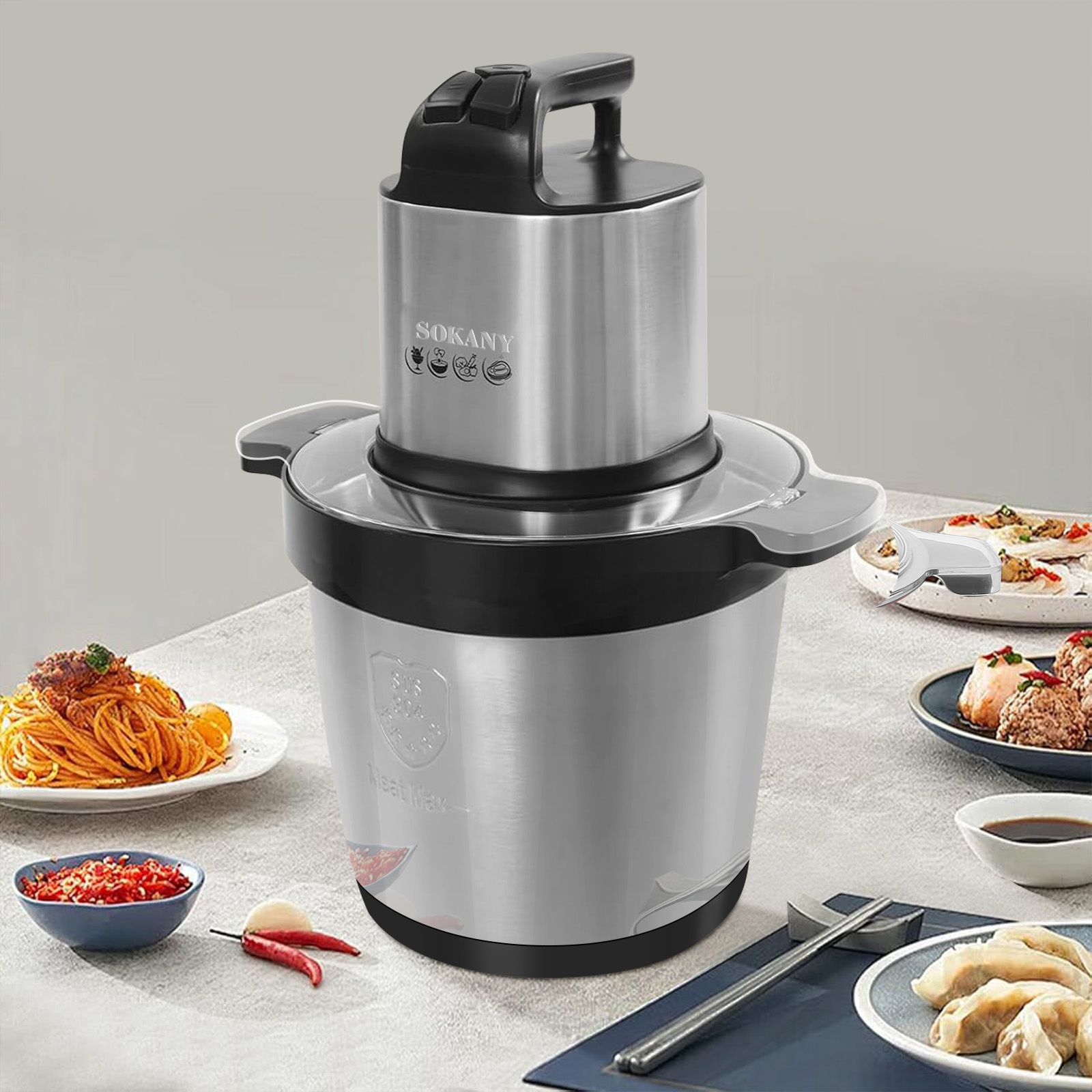 Le hachoir électrique Sokany SK-666666 combine puissance et grande capacité pour vos préparations quotidiennes. Avec son moteur de 2000W et ses lames en acier inoxydable, il hache viandes, légumes, fruits et noix en quelques secondes. Son bol inox de 10 L et son couvercle transparent assurent confort d'utilisation et durabilité pour toutes vos recettes familiales.