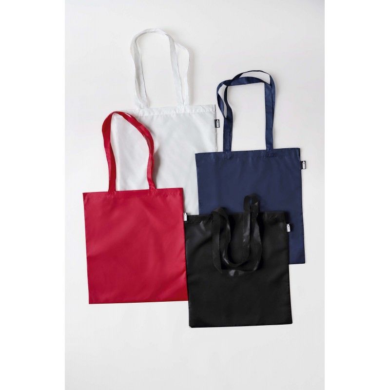 Le sac shopping est un sac à anses longues avec coutures renforcées et une poche intérieure zippée. Il est fait de tissu 100% polyester et est disponible en plusieurs couleurs. Il mesure 35 cm de haut, 45 cm de large et 15 cm de profondeur.