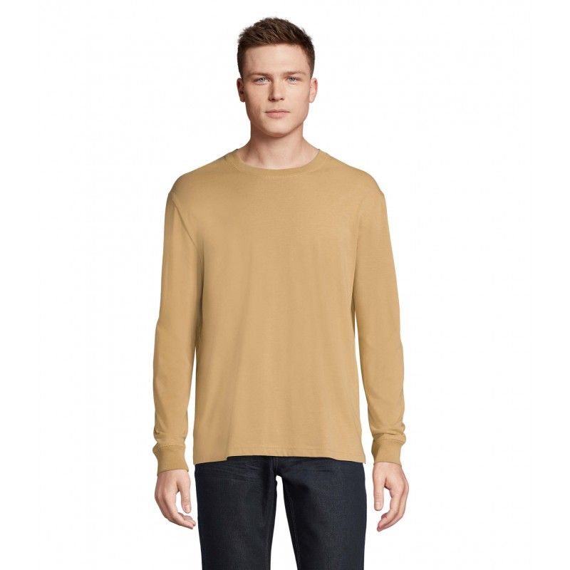 Tee-shirt unisexe manches longues en coton avec col rond, bande de propreté au col, et poignets avec bord côte 2x1 lourd. Le tee-shirt est coupé-cousu et a des fentes latérales pour plus de confort.