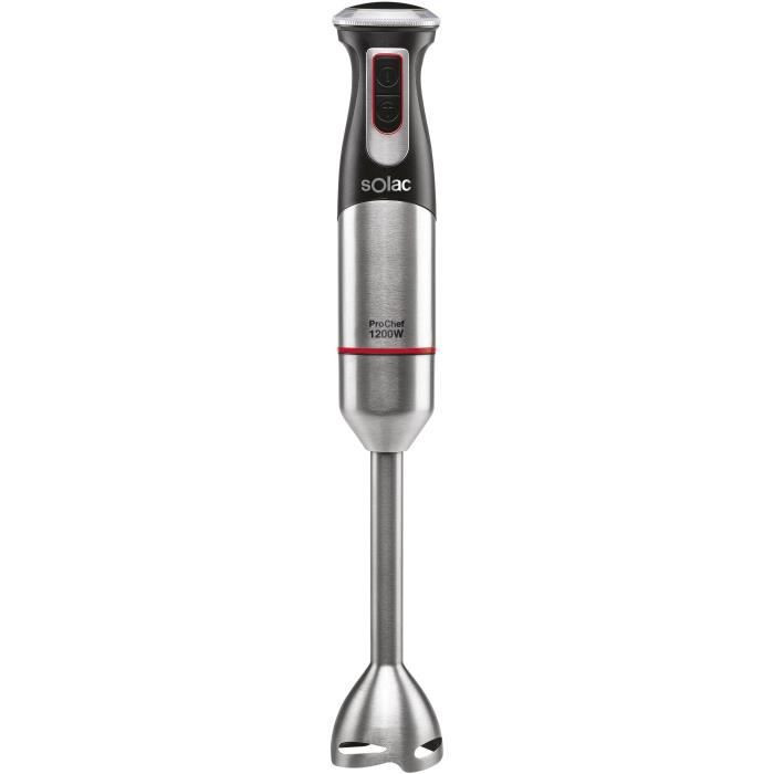 | Libellé | SOLAC ProChef 1200 - Mixeur plongeant + accessoires 1200 W - Fonction Turbo - Lame et pied en acier inoxydable - Gris, noir et r |