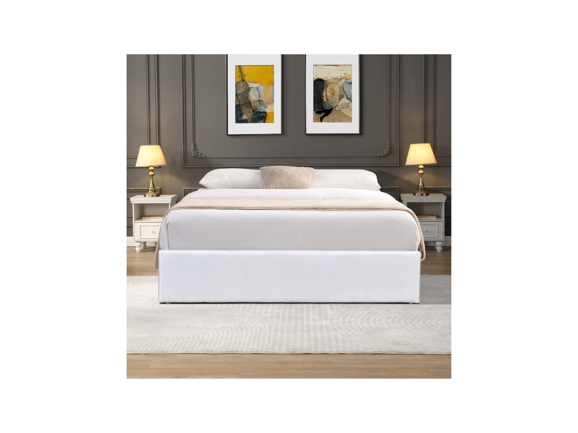 Solide Lit Coffre blanc pour matelas 180x200 cm - 12 Lattes - manon + pieds - Montage Rapide et Facile -