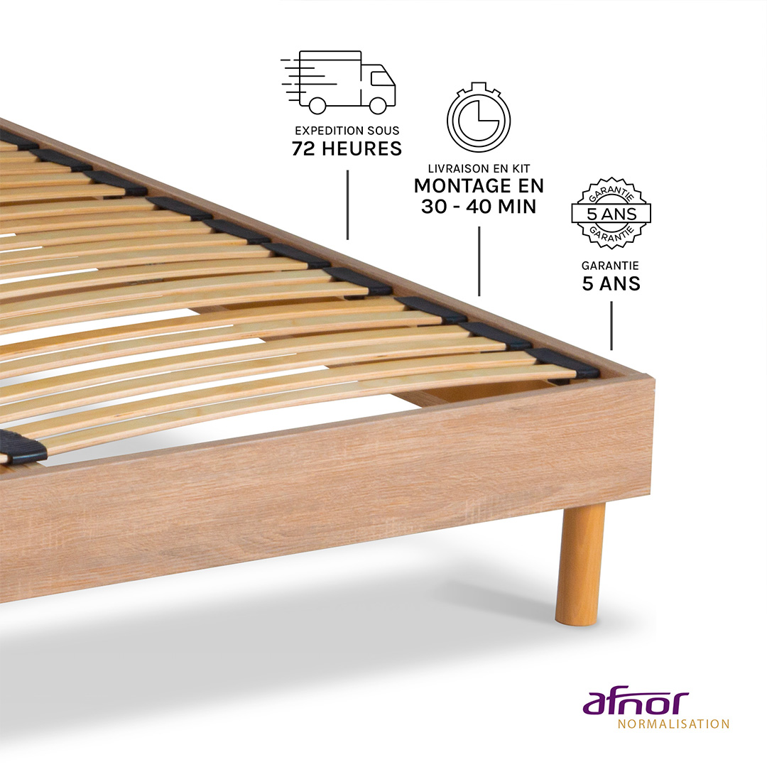- Cadre en bois : Assortez facilement ce sommier à lattes au reste de votre mobilier de chambre. Les pieds en bois sont également assortis au cadre.