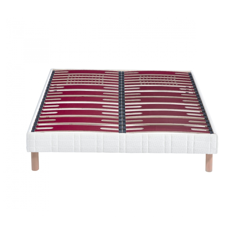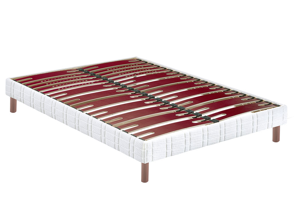 - Sommier Bultex confort morphologique bi lattes + pieds :- Suspension : 2x8 bi lattes multiplis + lattes perforées en 140x190cm- Zone épaule assouplie: 2x4 lattes perforées- Zone bassin renforcée: 2x8 bi-lattes- Type de lattes : lattes multiplis insérées dans des embouts - Structure en bois massif- Renfort central à partir de la largeur 120cm.- Tissu : finition stretch- 4 masses d'angle pour pieds filetage 8mm.- Peut être inséré dans un lit ou mis sur pieds- Fabrication française- Jeu de 4 pieds bois offerts