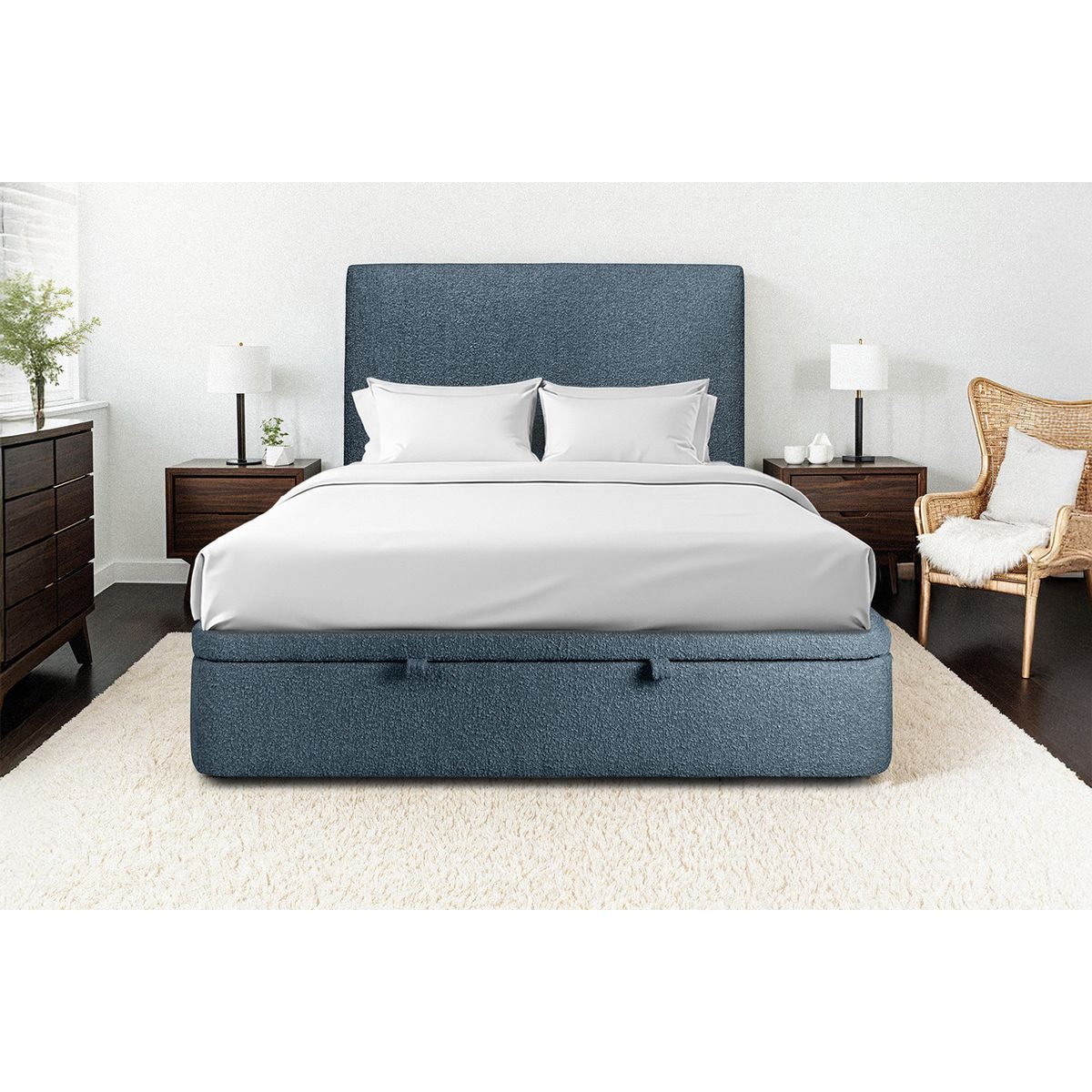 Sommier coffre - Bouclette Bleu - Livré monté