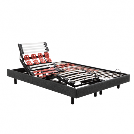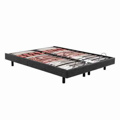Sommier électrique Epeda Escapade- Châssis métallique articulé avec 5 plans de couchage- Hauteur sommier : 15cm- Hauteur totale avec pieds : 32cm- Suspension : Bi-lattes multiplis- Confort épaules : 2 x 8 plots- Confort bassin : 2 x 4 bi-lattes réglables- Dos déployant et pieds plongeants- Moteur : 6500N avec Système de protection et de contrôle du champ électromagnétique- Pile 9V en fonction relais en cas de coupure de courant- Télécommande sans fil à radiofréquence avec remise à zéro et mémoire de position- Pieds de lit noirs hauteur 17cm - 4 pieds pour les dimensions mono, 8 pieds pour les dimensions duo.- 1 butée pieds pour les dimensions mono, 2 butées pieds pour les dimensions duo.- Pochette de rangement intégrée au sommier pour la télécommande.- Caisse déco tissu en différents coloris : Lin naturel (80% viscose, 13% coton et 7% lin), Chiné gris (70% polyester et 30% coton), Gris impérial (64% viscose et 36% coton).- Garantie : sommier 5 ans dont moteur 2 ans.- Tête de lit et matelas vendus séparément.