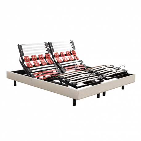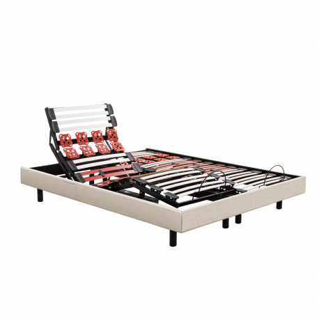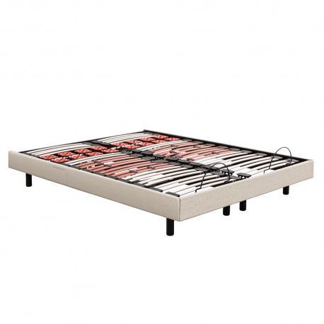 Sommier électrique Epeda Escapade- Châssis métallique articulé avec 5 plans de couchage- Hauteur sommier : 15cm- Hauteur totale avec pieds : 32cm- Suspension : Bi-lattes multiplis- Confort épaules : 2 x 8 plots- Confort bassin : 2 x 4 bi-lattes réglables- Dos déployant et pieds plongeants- Moteur : 6500N avec Système de protection et de contrôle du champ électromagnétique- Pile 9V en fonction relais en cas de coupure de courant- Télécommande sans fil à radiofréquence avec remise à zéro et mémoire de position- Pieds de lit noirs hauteur 17cm - 4 pieds pour les dimensions mono, 8 pieds pour les dimensions duo.- 1 butée pieds pour les dimensions mono, 2 butées pieds pour les dimensions duo.- Pochette de rangement intégrée au sommier pour la télécommande.- Caisse déco tissu en différents coloris : Lin naturel (80% viscose, 13% coton et 7% lin), Chiné gris (70% polyester et 30% coton), Gris impérial (64% viscose et 36% coton).- Garantie : sommier 5 ans dont moteur 2 ans.- Tête de lit et matelas vendus séparément.