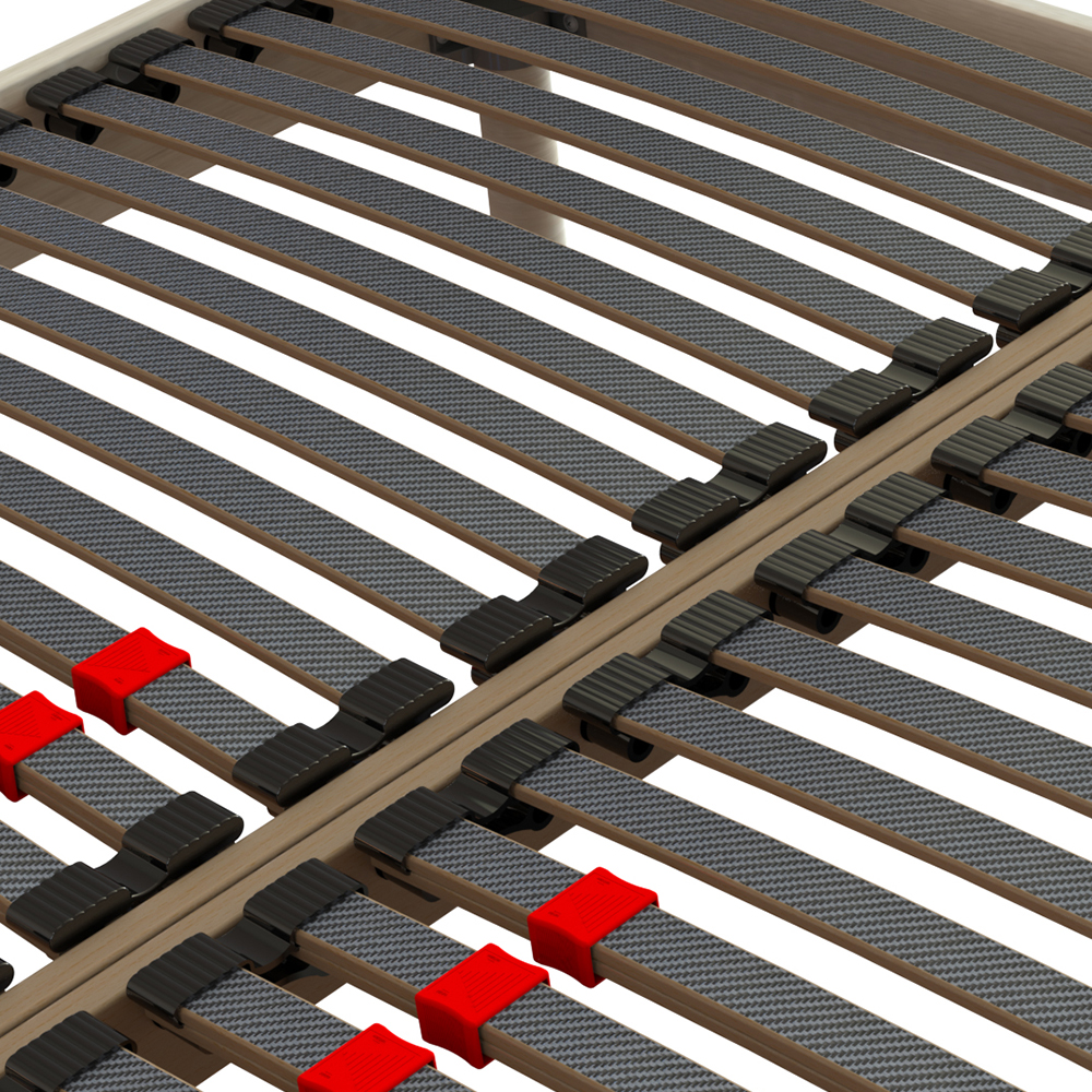- Zone de confort lombaire ultra-ajustable : Le sommier dispose. au niveau des lombaires. de 6 lattes avec curseurs de fermeté pour un soutien 100 % personnalisable.