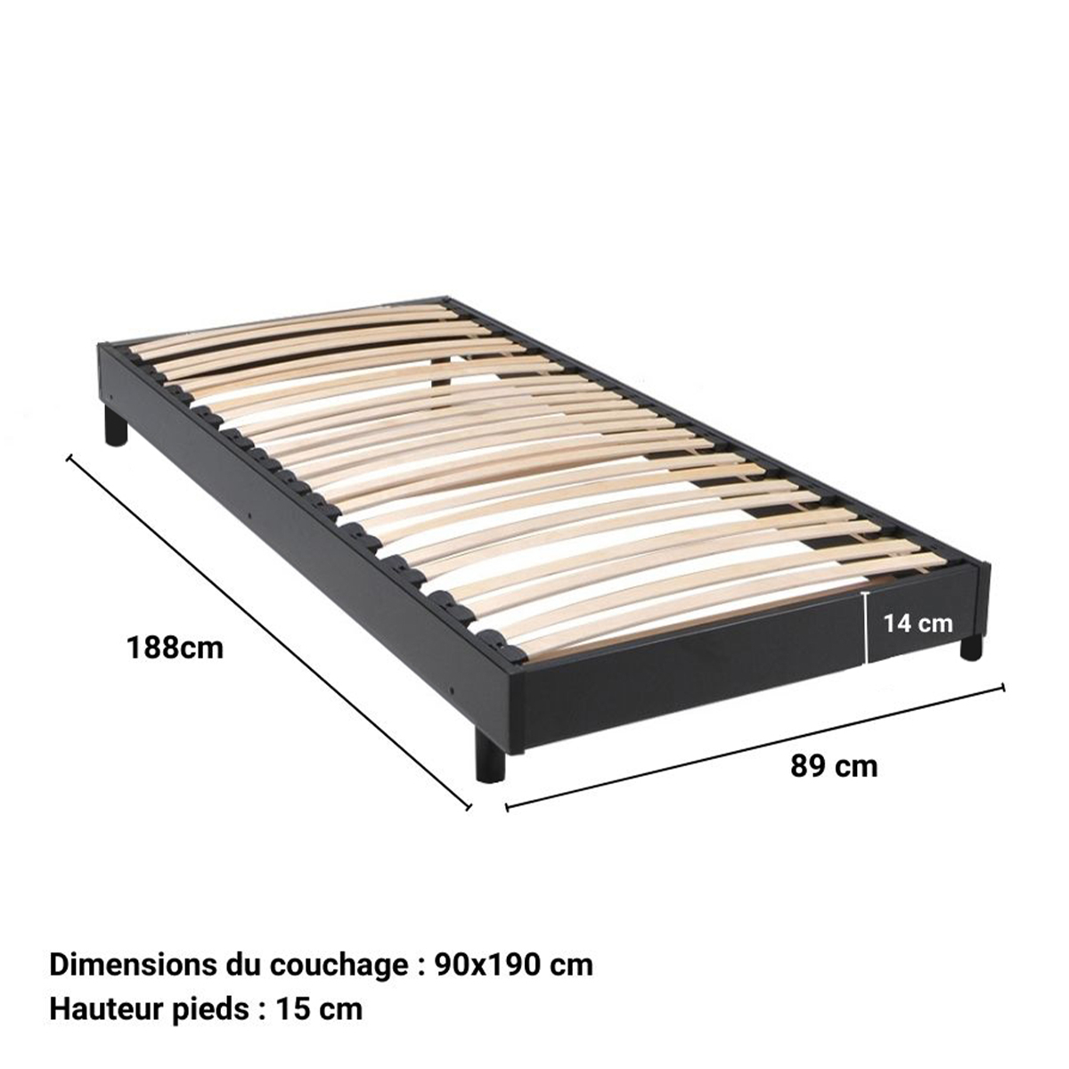 Sommier sur pied 90x190 26 lattes Izar - Noir