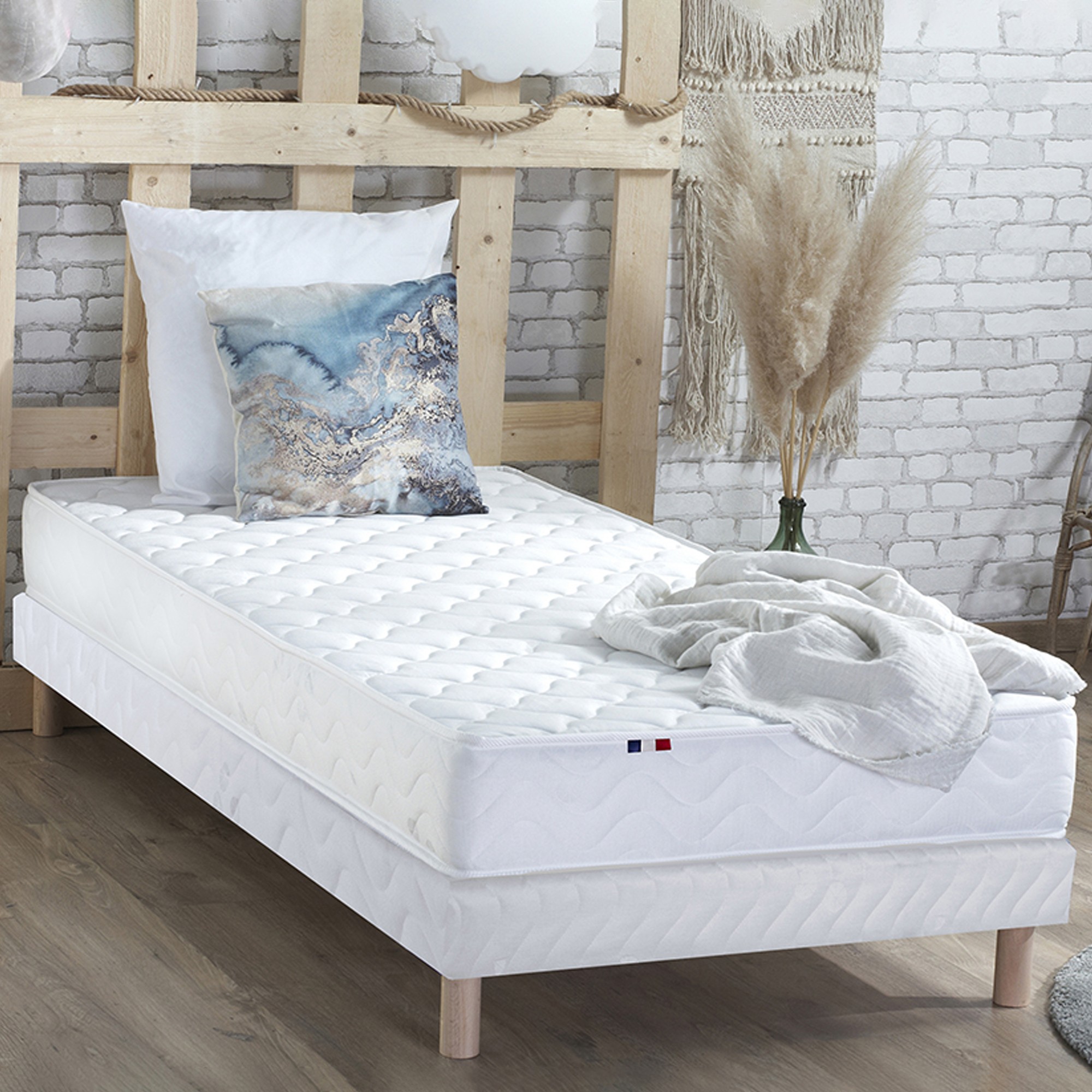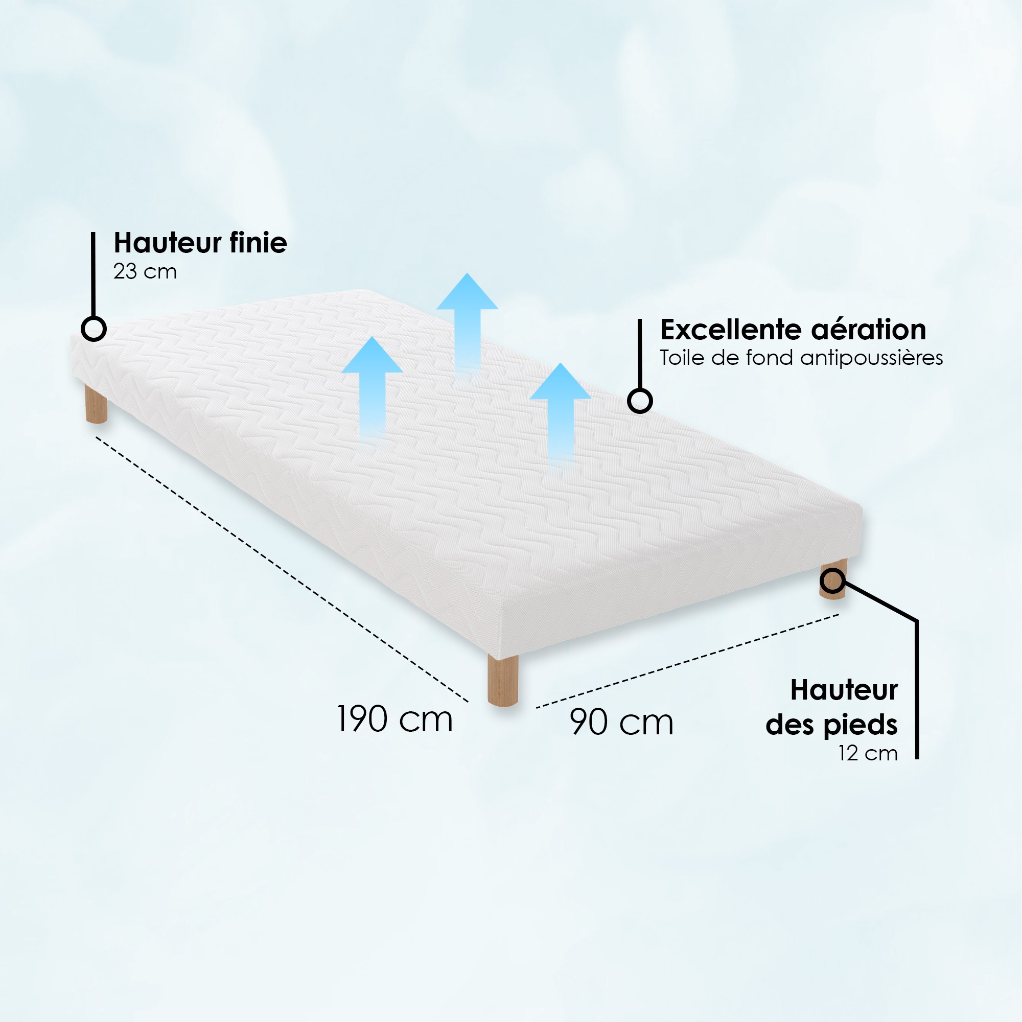 SOMMIER TAPISSIER BLANC A LATTES AVEC JEU DE 4 PIEDS