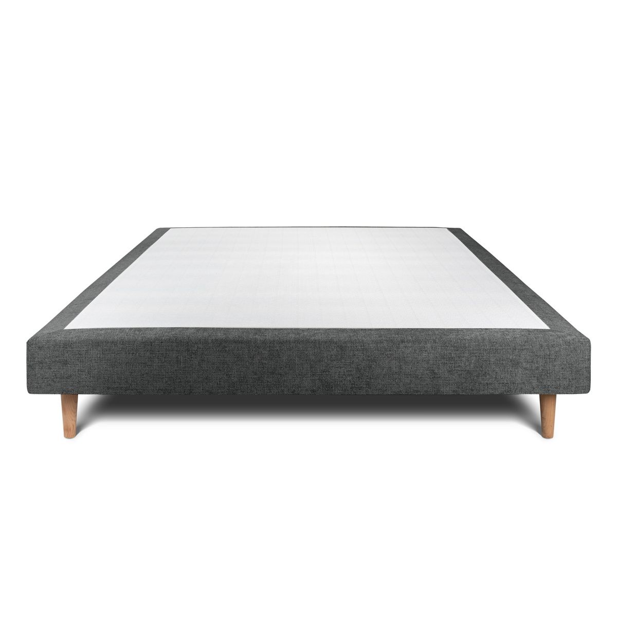 Sommier Tapissier monobloc - Tissu toile natté Gris anthracite - Livré monté