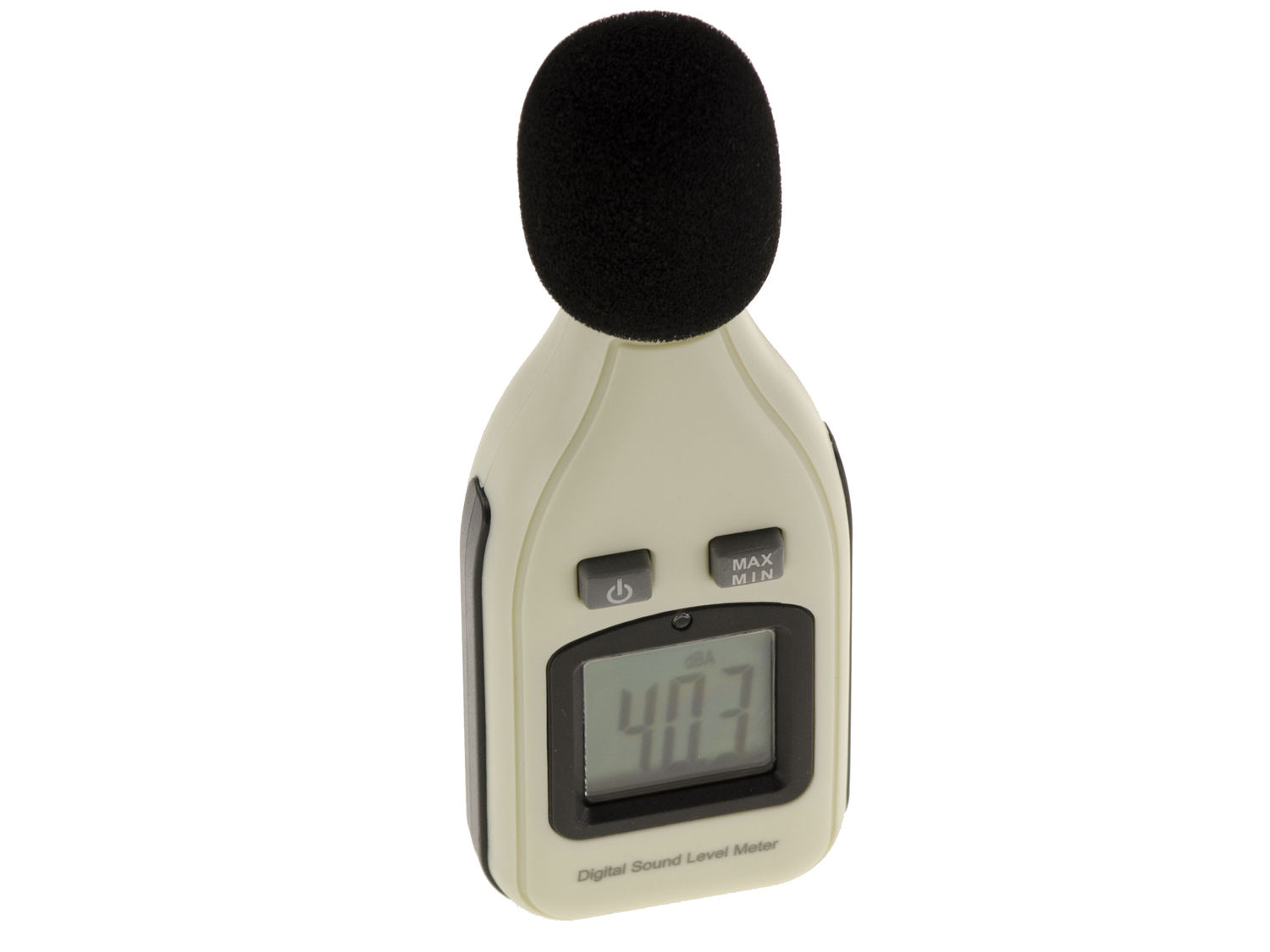 Permet de mesurer le volume sonore ambiant ou d'une source particulière. Descriptif : Conçu selon les normes IEC651 TYPE2 et ANSI S1.4 TYPE2. Plage de mesure 30dBA~130dBA. Précision 1,5 dB (94dB à 1KHz). Plage de fréquence 31.5Hz~8KHz. Affichage numérique 4 chiffres, Résolution 0,1 dB. Taux d?échantillonnage 2 fois/seconde. Alimentation 9V (pile alcaline fournie). Possibilité de figer les MAX/MIN relevés. Affichage automatique du rétroéclairage. Mise hors tension automatique. Poids 144g (y compris la batterie). Dimensions 57*26*149 mm. Possibilité de fixer l'appareil sur un pied grace à son pas de vis sur la face inferieure.