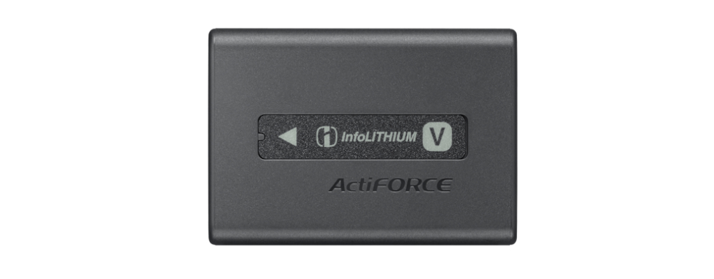 Modèle de batterie rechargeable InfoLITHIUM série V doté de la plus grande capacité. Affichage du témoin d'alimentation restante précis sur Handycam. Autonomie améliorée par rapport au modèle précédent, le NP-FV100. Charge rapide avec chargeur BC-QM1/AC-VQV10 en option