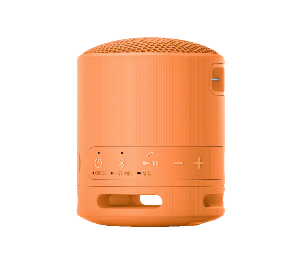 Sony SRS-XB100. Technologie de connectivité: Sans fil, Profils Bluetooth: A2DP, HFP, AAC, AVRCP, SBC, Connecteur USB: USB Type-C. Type de produit: Enceinte portable mono, Couleur du produit: Orange, Conception du produit: Cylindre. Utilisation recommandée: Universel, Formats audio pris en charge: SBC, AAC. Type de batterie: Batterie intégré, Puissance de charge requise (min): 1,6 W, Puissance de charge requise (max): 2,5 W. Poids: 274 g, Largeur: 76 mm, Profondeur: 95 mm