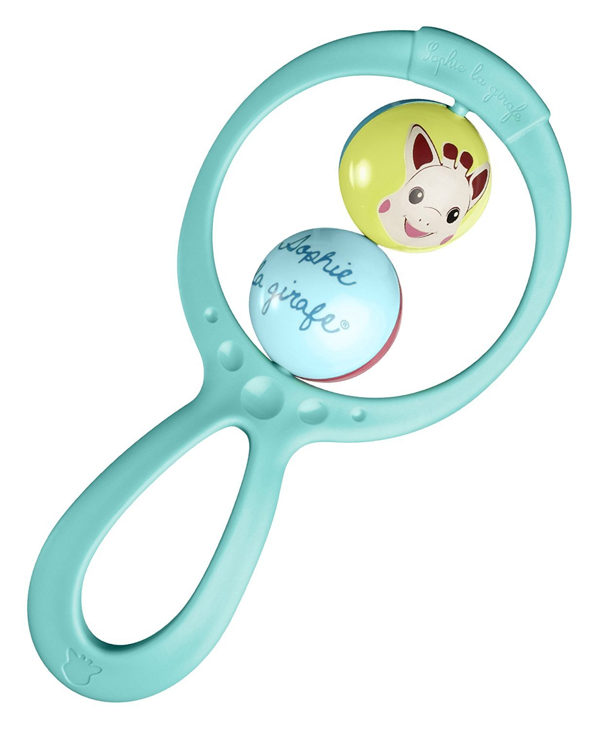 L’incontournable hochet classique à l’effigie de Sophie la Girafe revisité . Avec ses couleurs vives et ses formes arrondies il fait l’unanimité chez les bébés ! Deux boules à faire tourner pour voir les couleurs se mélanger et la tête de Sophie tournoyer. Des grelots à faire tinter. Facile à saisir et à manipuler grâce à sa poignée adaptée aux petites mains. Coloris en assortiment.