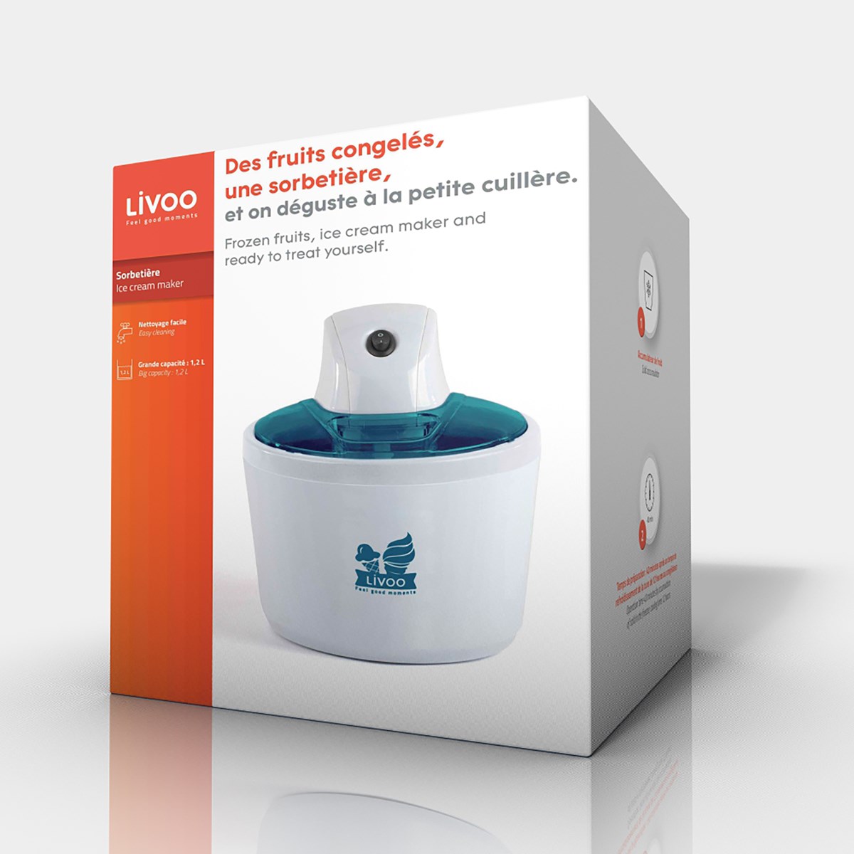 - Temps de préparation de la glace/sorbet de 15 à 30 minutes après un temps de refroidissement de la cuve de 12 heures au congélateur