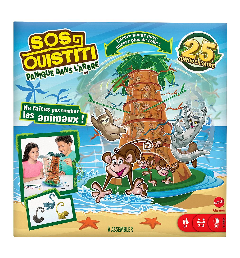 Jeu d’adresse avec un palmier culbuto et des bâtonnets tordus dont le but est de ne pas faire tomber les animaux qui y sont accrochés. On travaille coordination et concentration.