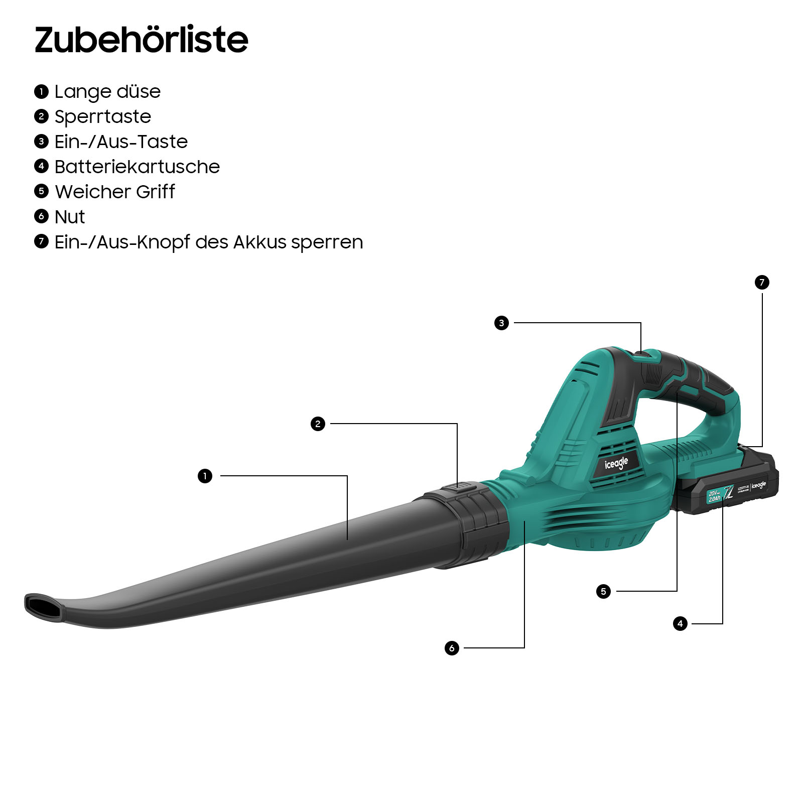 | Libellé | Souffleur Batterie sans Fil 20V, 180km/h Souffleur de Feuilles sans Fil, Souffleur Jardin avec Moteur sans Balais, 1X2.0Ah Batterie |