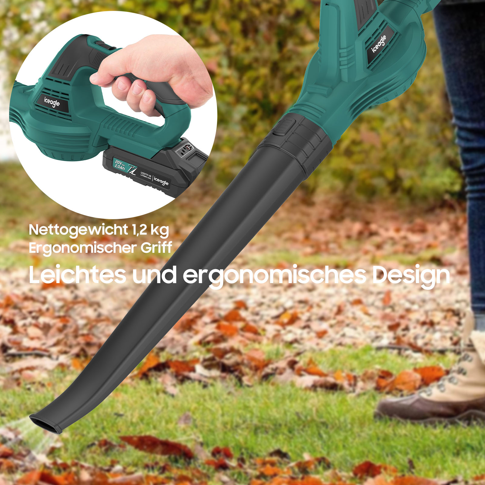 Souffleur Batterie sans Fil 20V, 180km/h Souffleur de Feuilles sans Fil, Souffleur Jardin avec Moteur san
