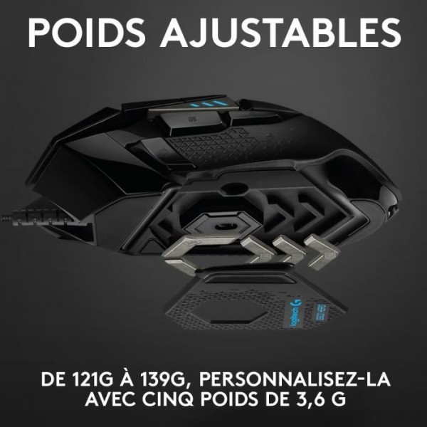 La souris G502 HERO présente le capteur optique le plus avancé pour une précision de suivi maximale, un éclairage RVB personnalisable, des profils pour le jeu personnalisables, une sensibilité de 200 a 25 600 PPP et des poids repositionnables.