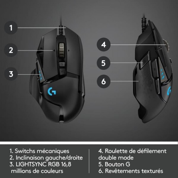 Libellé Souris gamer - Filaire - Logitech G - G502 Hero - Noir